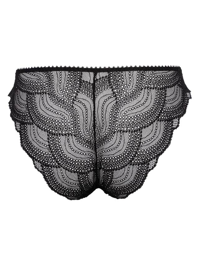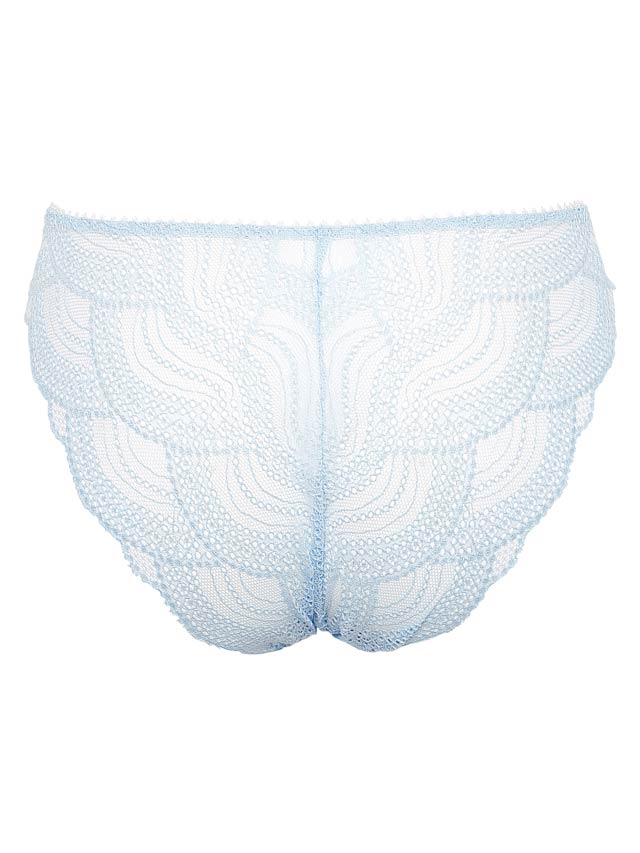 水面の揺らぎをイメージした編みレースを後身頃に使用。さらに波をイメージしたアウトゴム付けはさり気ないデザインポイント。