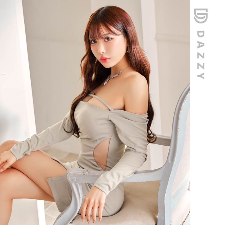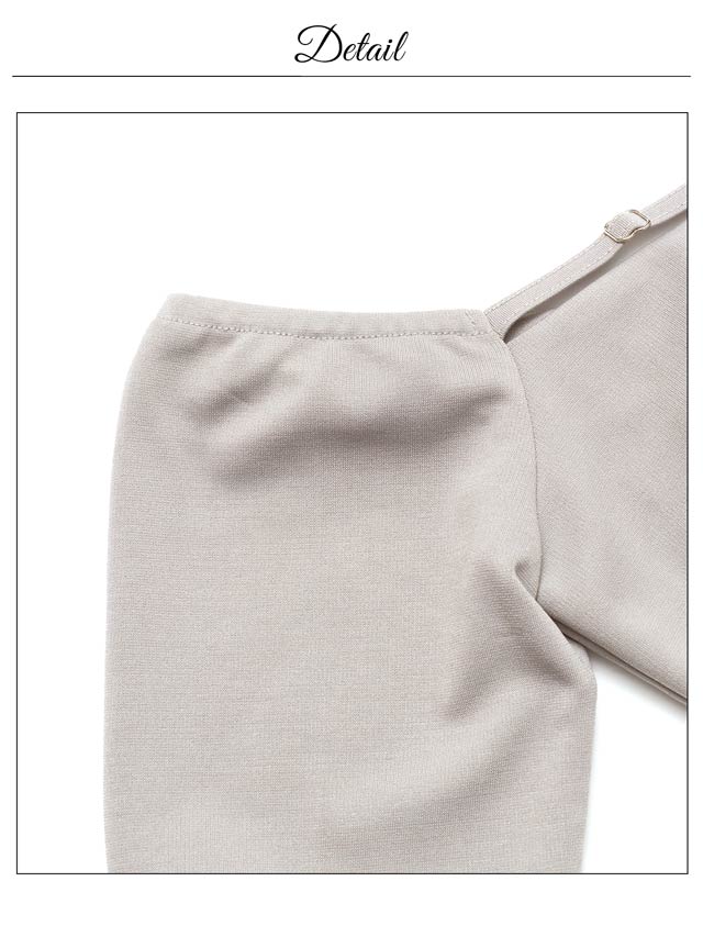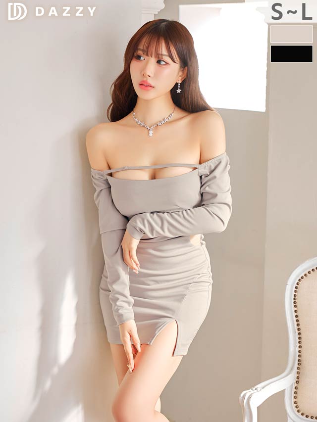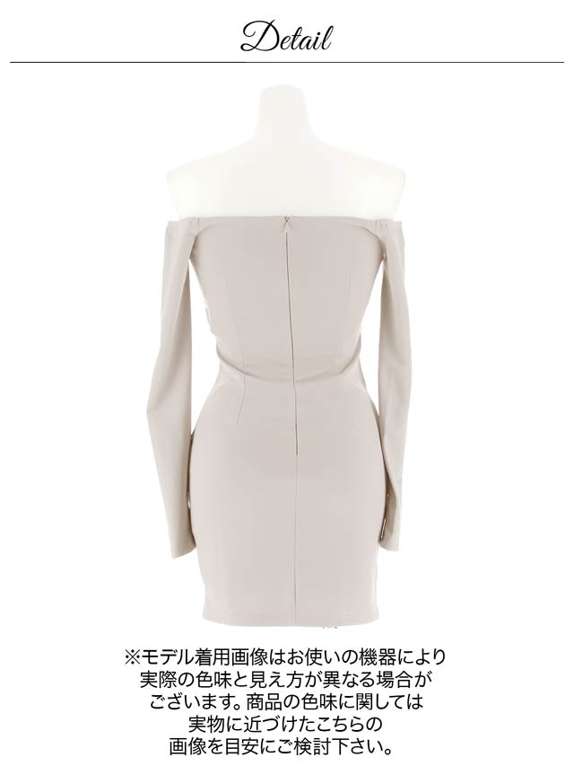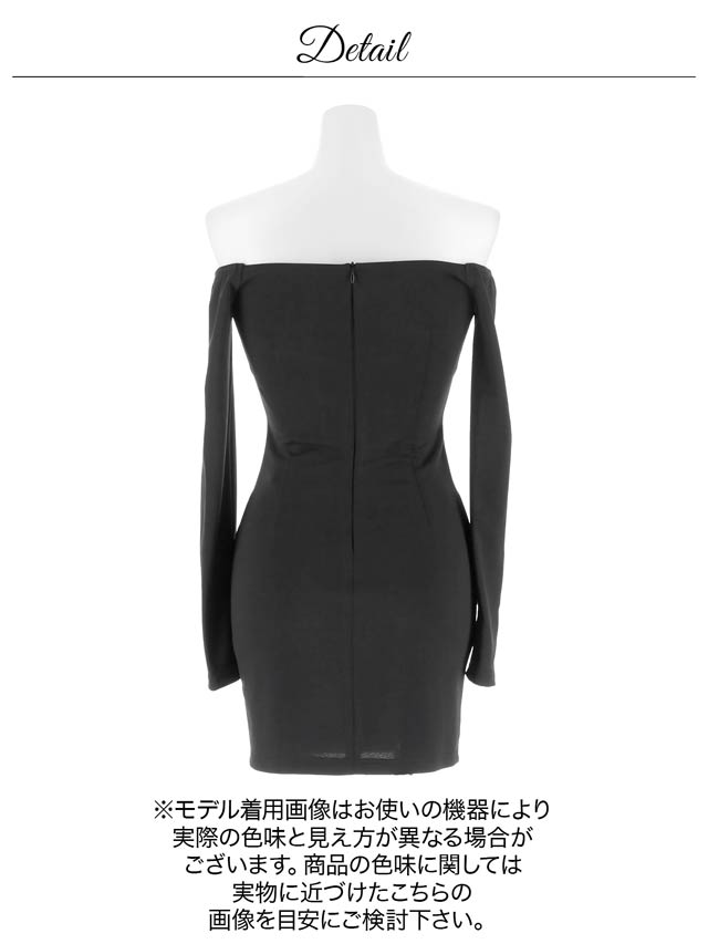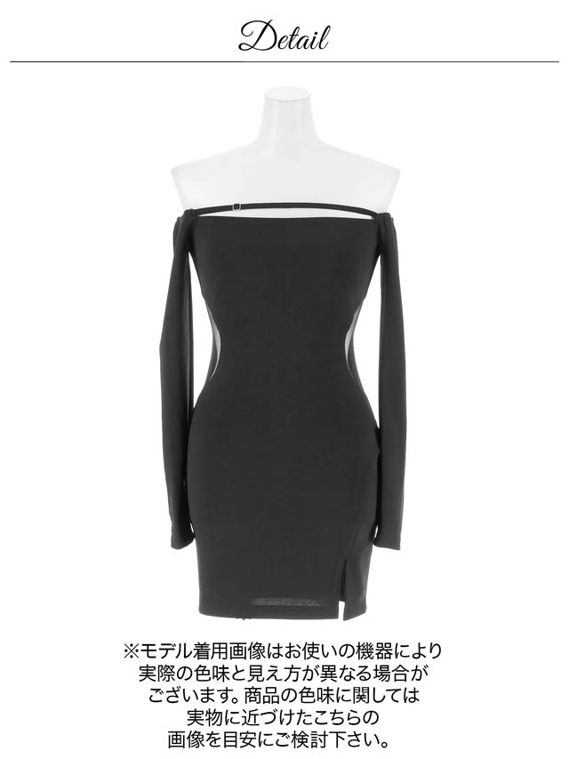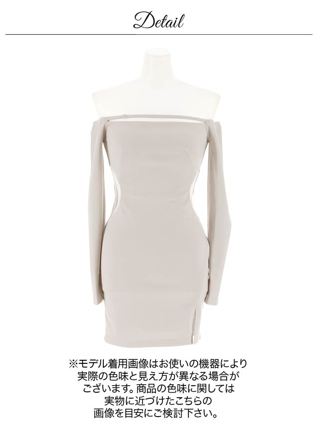 くびれラインを際立たせるウエストの透け感が視線を釘付けにするミニドレス。ワンカラー仕様のタイトなシルエットは韓国風な着こなしが好きな方にもおすすめ◎ 大胆なオフショルにアジャスター付きのバストラインがデコルテを美しく演出する1着です。