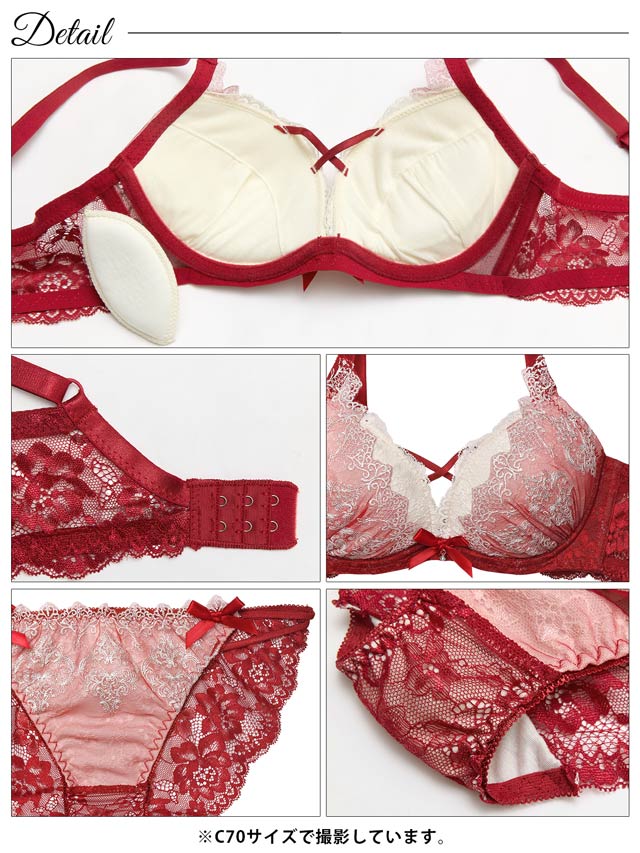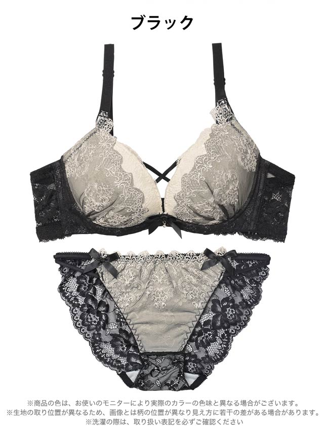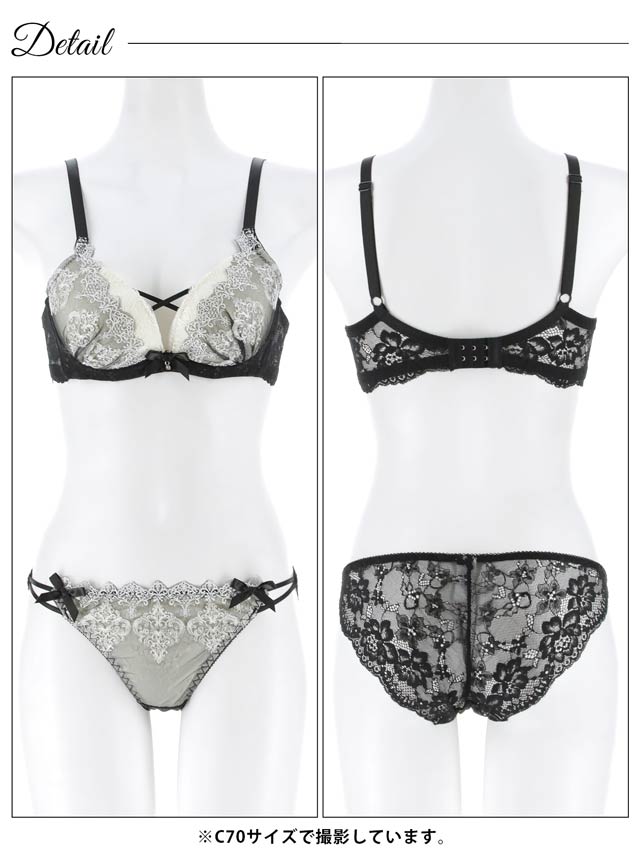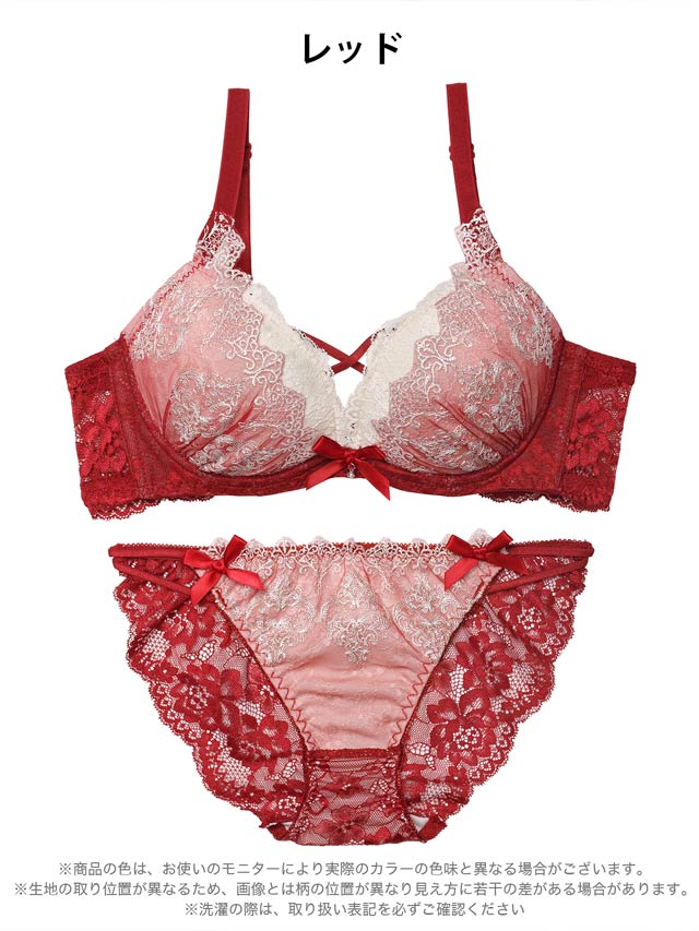 12/12新作!【EFサイズ】エレガントエンブロイダリー育乳脇高ブラジャー&バック透けフルバックショーツ[推し]