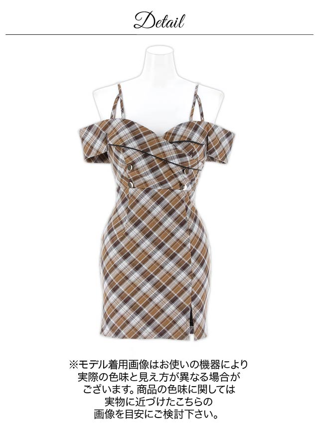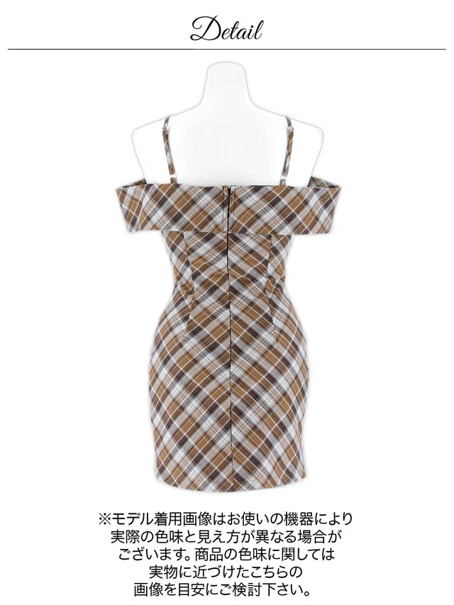 12/12新作!SEXYな肩見せオフショルチェック柄タイトミニ丈キャバドレス[SML/3サイズ展開]