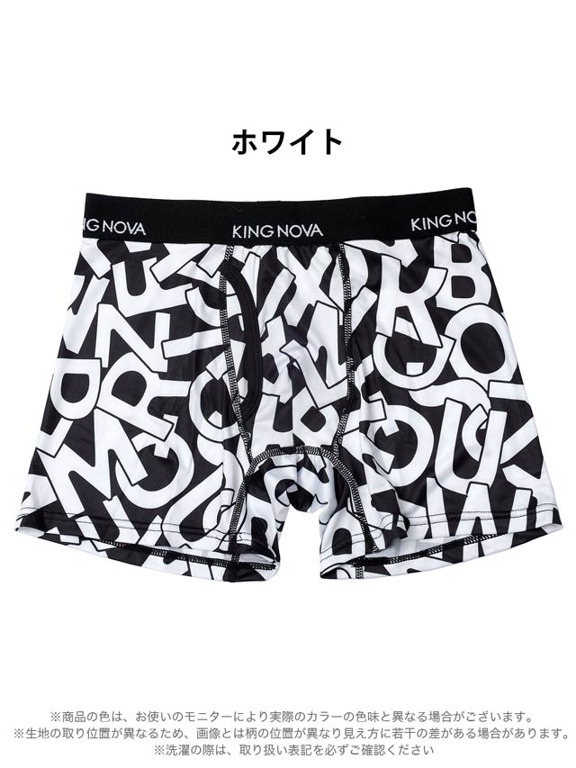 アルファベットが散りばめられた男性用ボクサーパンツ。ストレッチが効いていて着心地抜群◎遊び心あるデザインで、プレゼントにも普段使いにもばっちりです♪