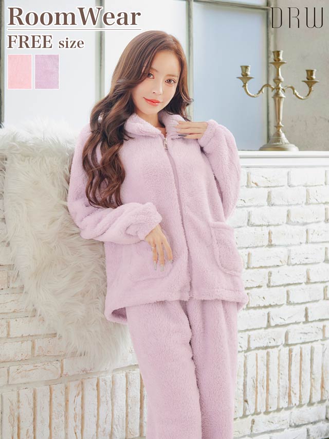 ふわふわあったかくてかわいいルームウェア。フェミニンなカラー展開でとってもキュート♪両サイドポケット付きでスマホや小物を持ち運べます◎もこもこで肌触りがよく、着心地のいいルームウェアです。