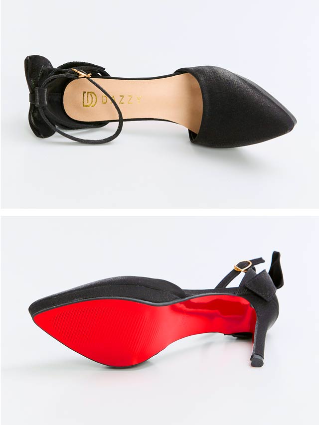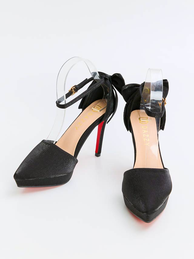 12/19新作![10cmヒール]マットサテンリボンストラップ付きポインテッドトゥキャバヒールパンプス[dazzyオリジナル]