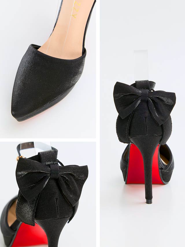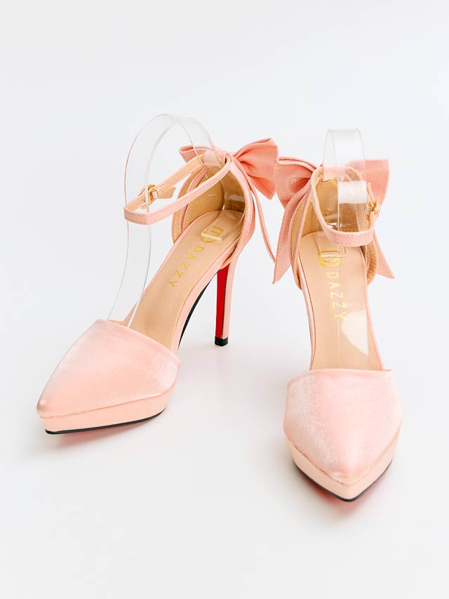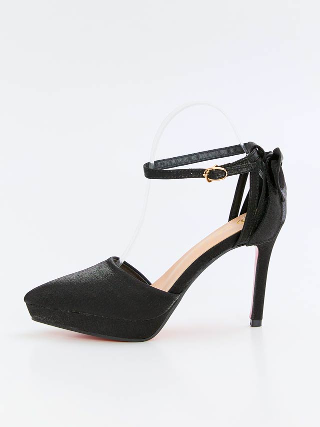 程よい光沢感のあるマットサテン生地が上品なポインテッドトゥパンプス。踵にあしらわれた大きなリボンが後ろ姿からも甘い雰囲気を演出します◎ 足首をしっかりホールドしてくれるアンクルストラップ付きなので、安定感があり歩きやすいのが嬉しいポイントです。