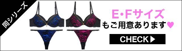 光沢のあるサテン生地×薔薇のブラックレースが色っぽいブラ。フロントのファスナーで自由自在に谷間が作れます♪直接金属が胸に当たらないので金属アレルギーの方も安心して着けられます。セットのボトムはおそろいのバックレースショーツ!