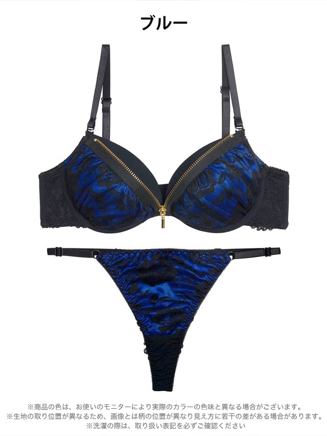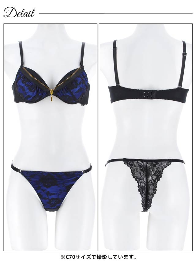 12/19新作!ロージーレースファスナーブラジャー&バック透けTバックショーツ[推し][人気]