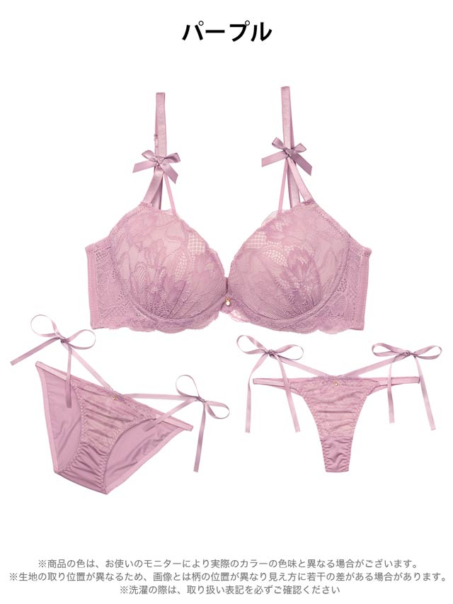 12/2再販!【三上悠亜着用】【3点セット】エトワールリボンレース育乳ブラジャー&フルバック&Tバックショーツ[推し]