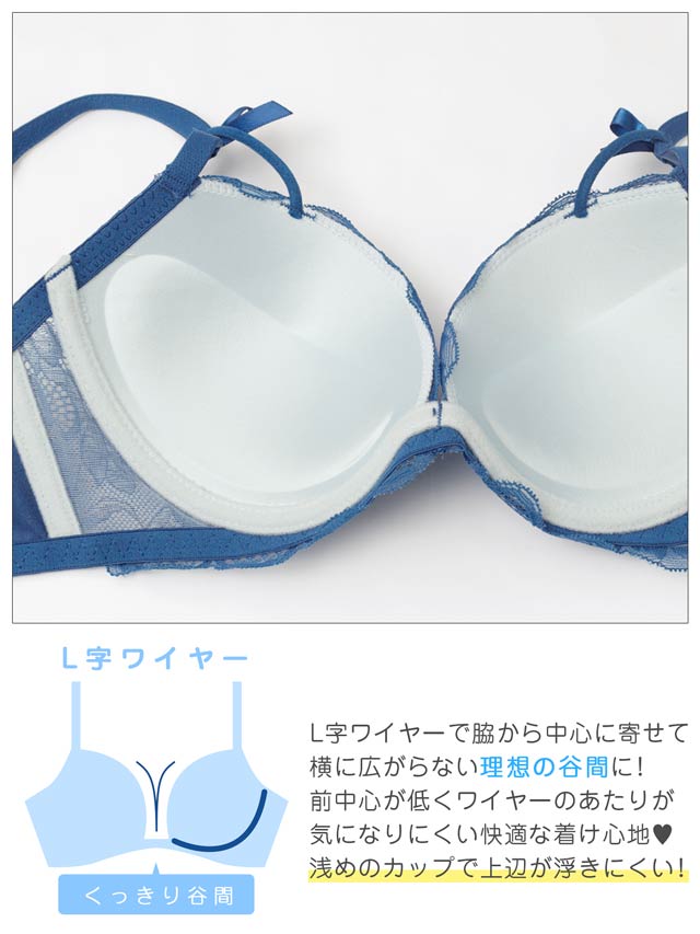 3/4カップ(モールドカップ)/ワイヤー:有(L字)/ホック:バック2段3列