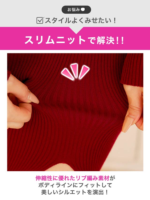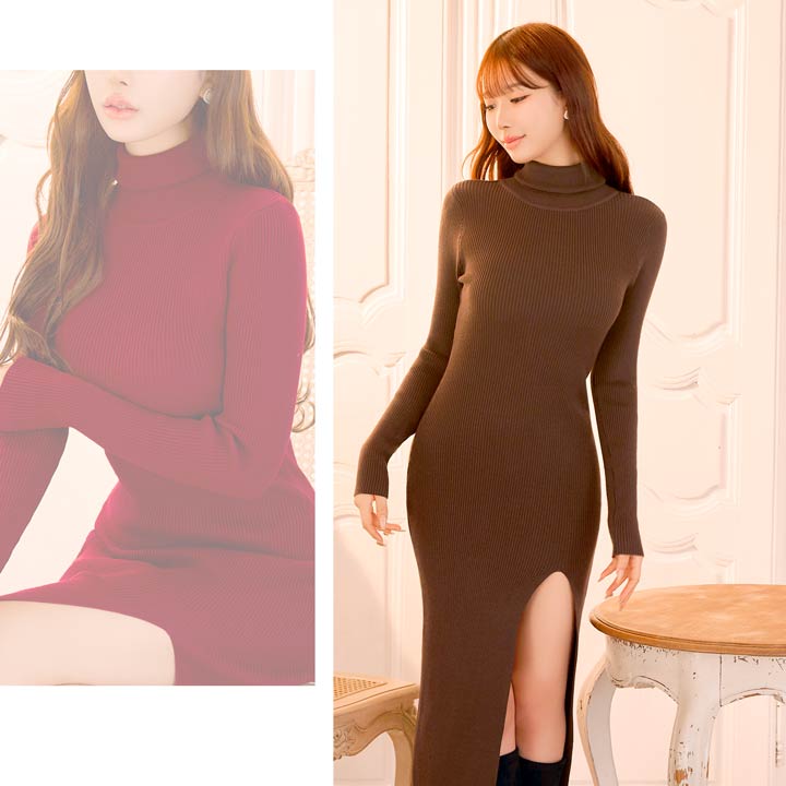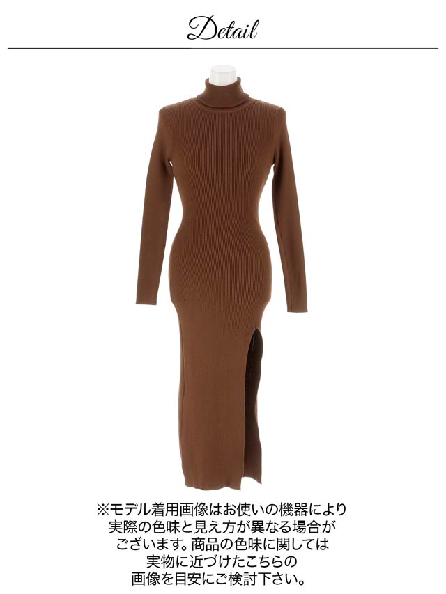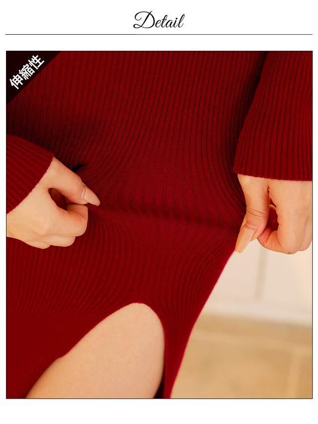リブニットのタイトシルエットが身体のラインを美しく魅せ、大人ムード漂うニットワンピース。深めのスリットから覗くレッグラインが抜け感とセクシーさを演出します。シンプルながら存在感のあるデザインで、お仕事はもちろんデートにもぴったりの1着です◎