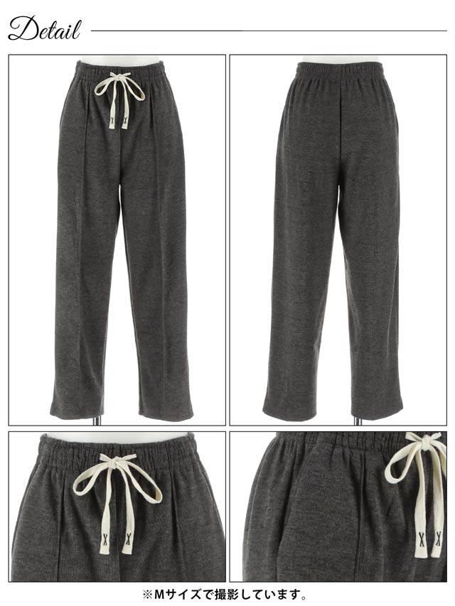 脚をふんわりと包み込む暖かい裏起毛のロングパンツ。センターピンタック入りで脚のラインをまっすぐに見せ、美脚効果を叶えてくれます◎楽ちんなのにダル着感が出ないので、おうち時間はもちろんワンマイルウェアとしても活躍する1着です!