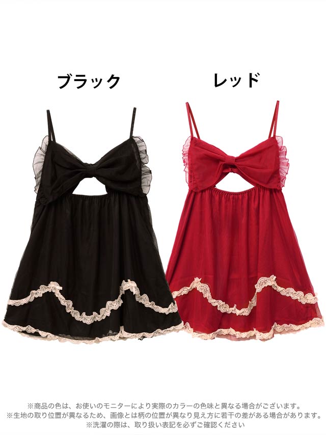 大きなリボンが特徴的なベビードールです。レースやリボンで可愛さもありつつ、透け感のあるシアー素材やリボンの下のスキマが色っぽくエロかわいいデザインです♪