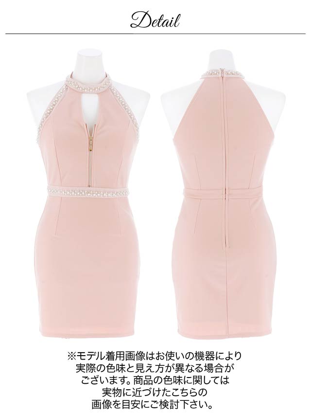洗練された印象を与えるアメスリデザインに、パールビジューで華やかさを添えたミニ丈キャバドレス。胸元へ視線を集めるフロントジップ付きで谷間魅せを自在に調節可能♪高めのウエスト切り替えラインがスタイルアップ効果も抜群の1着です◎