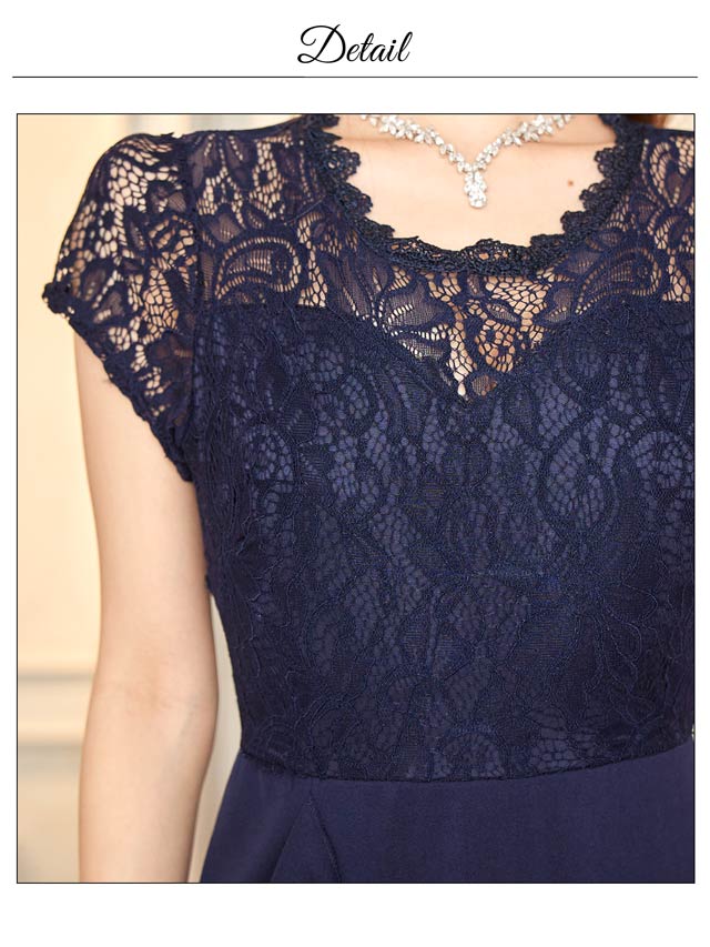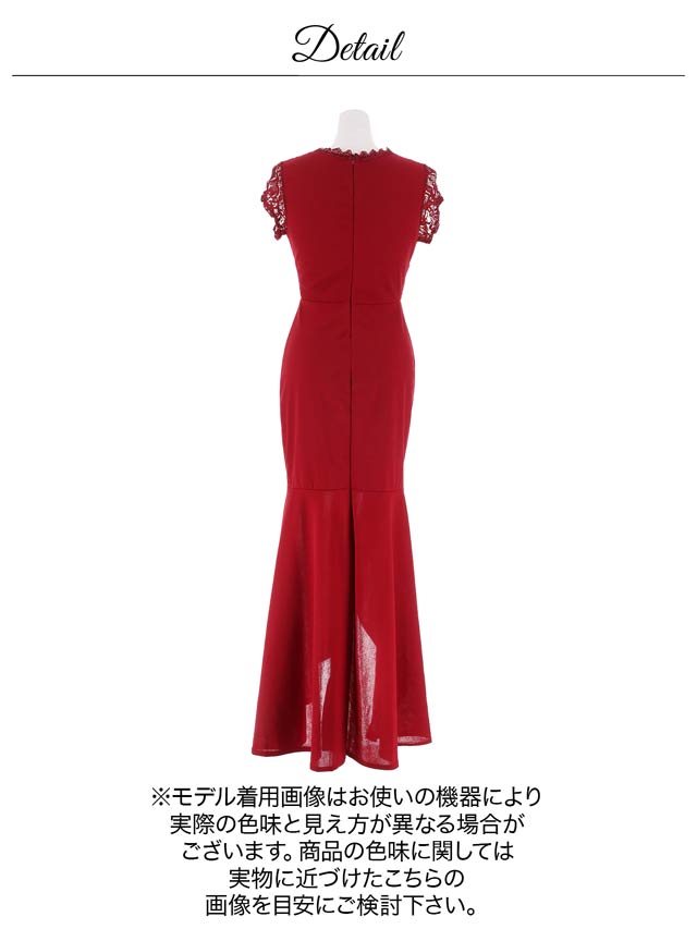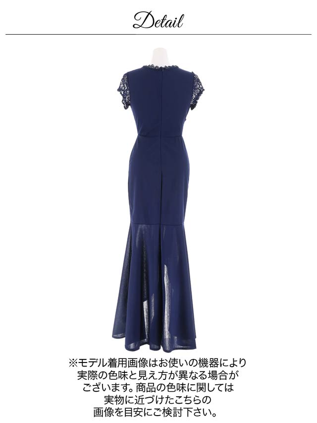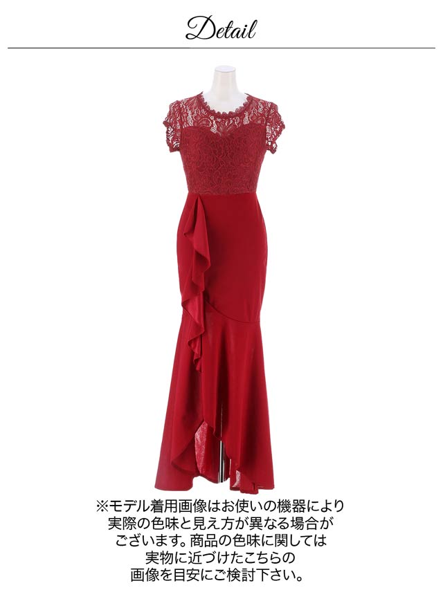 裾にかけてのドレープラインが美しいロングドレス。高級感漂うスリット入りのマーメイドシルエットが女性らしい曲線美を演出します◎ フラワーレース切り替えの程よい肌魅せが上品さをプラスしてくれる1着です。