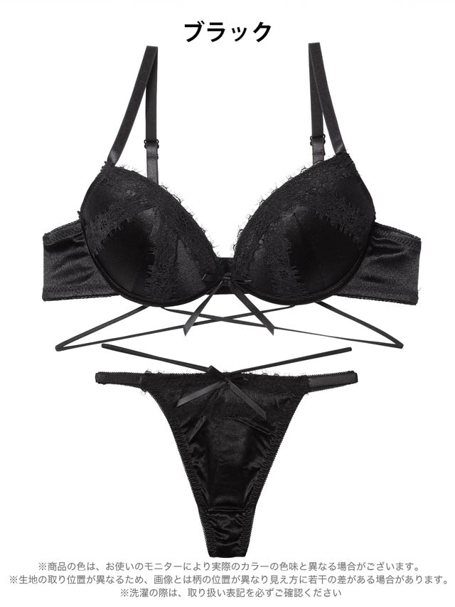 12/24新作!【Tバック】グリッターサテンレースストリングブラジャー&Tバックショーツ[推し][人気]