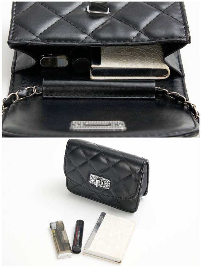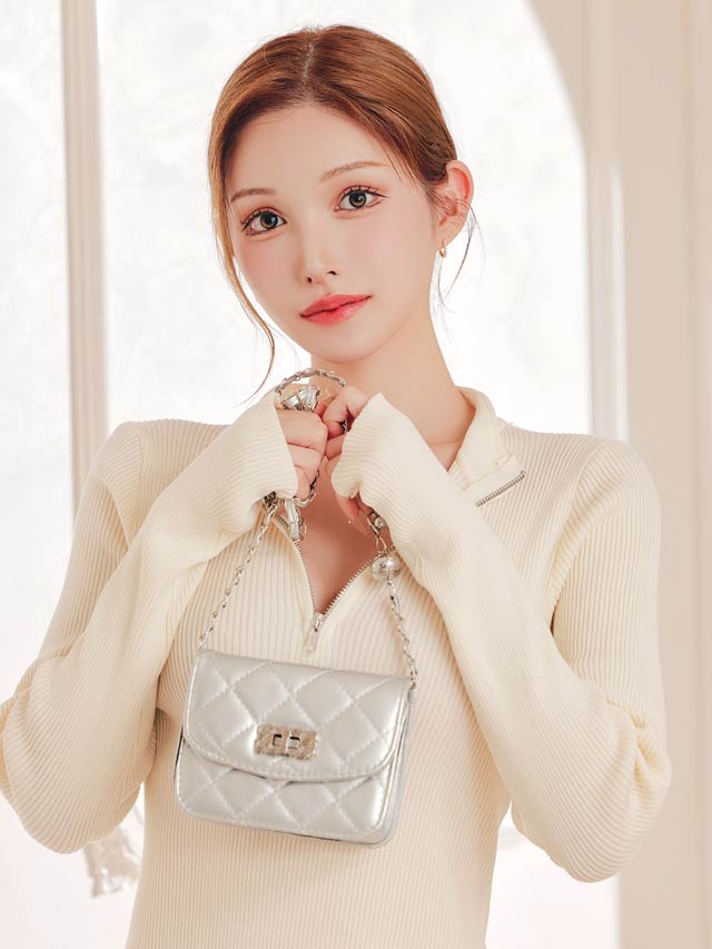 シンプルながら上品な印象を与えるキルティングデザインのミニバッグ。名刺入れやリップ、ライターが収まるコンパクトなサイズ感が可愛らしくお仕事シーンに必要なアイテムをスマートに持ち歩けます♪キャバドレスはもちろん、普段のコーデにも合わせられるアイテムです◎