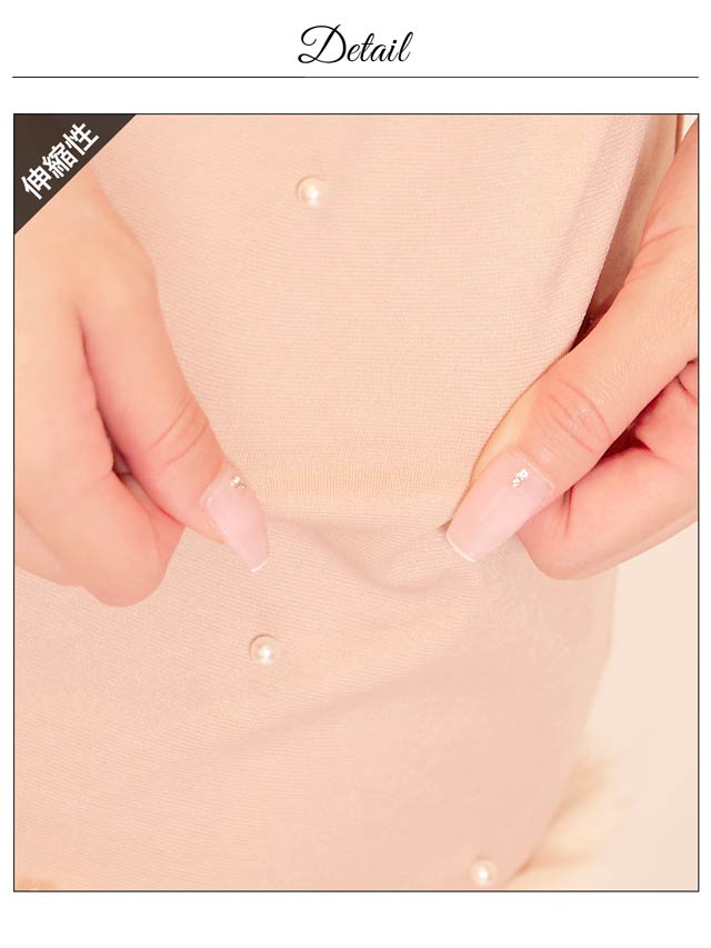 大きなチュールリボンが顔まわりを華やかに見せ、小顔効果も期待できるキャバドレス♪散りばめられたパールと裾のフリルが上品さの中にほどよい甘さを添えます。アメスリで程よく肌見せしつつ、胸元を隠せるので露出が苦手な方でも挑戦しやすいデザインです◎
