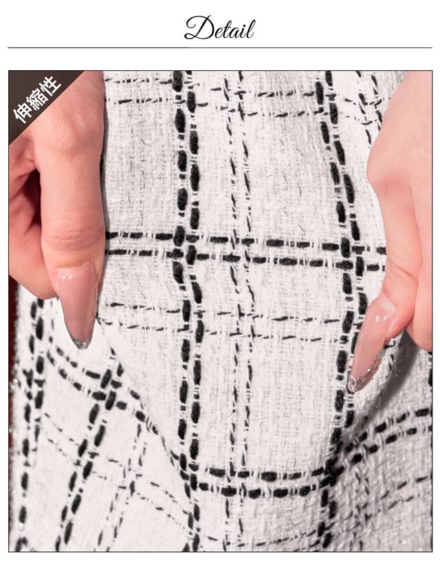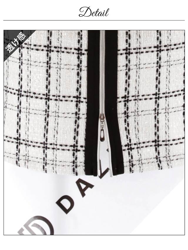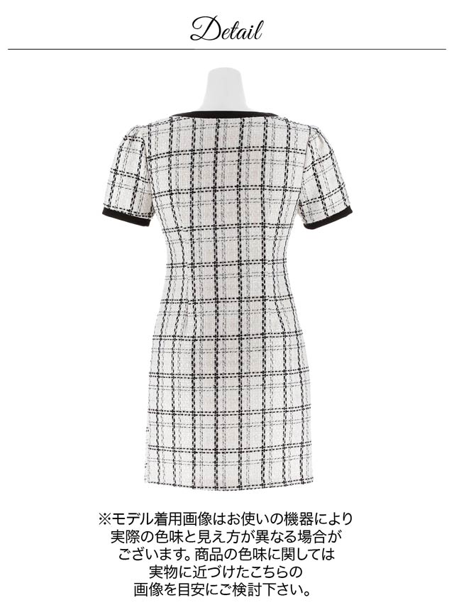 華やかでガーリーなツイードチェックが印象的なミニドレス。シルエットにメリハリを与えてくれるパイピング加工でスッキリとしたスタイルに◎ 上下ファスナーなので胸元とスリット両方調整できるのも嬉しいポイントです!