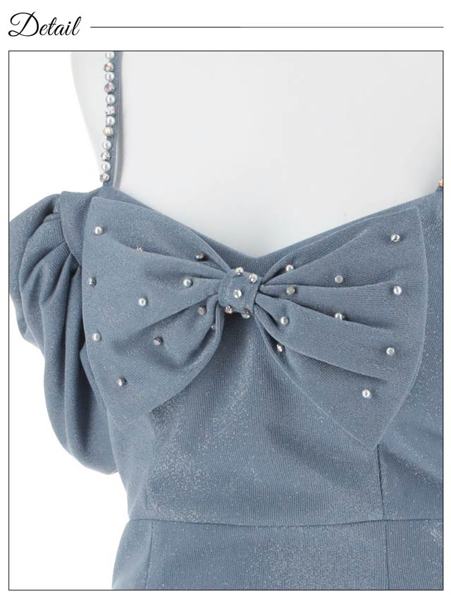 胸元に飾られた大きなリボンがとってもキュートなミニドレス。肩紐からあしらわれたラインストーンとパールビジューが上品な輝きを放ちます♪ パフスリーブはセクシーなオフショル袖としてもアレンジ出来ちゃう2way仕様です◎