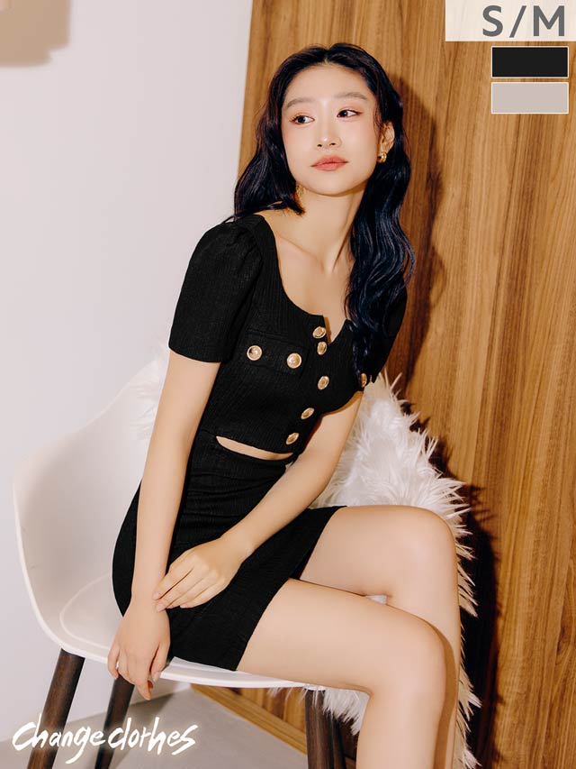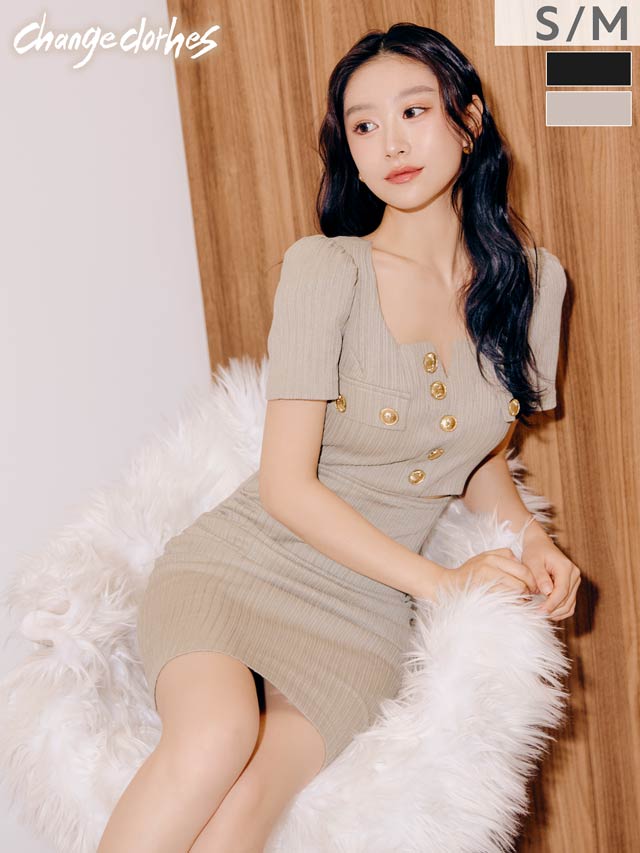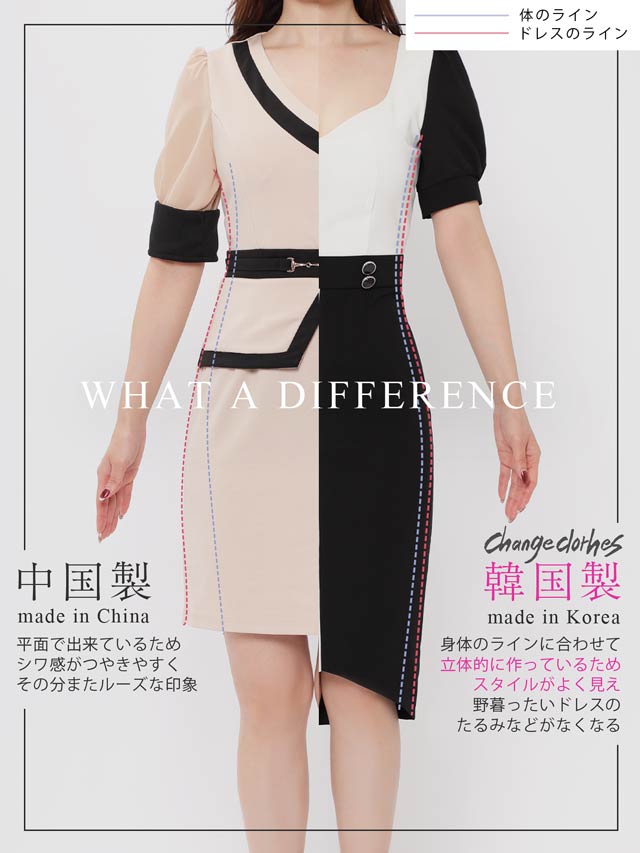 12/26新作![韓国キャバドレス]美デコルテ魅せ叶うフロントボタンウエストカット半袖タイトミニ丈キャバドレス[change clothes]