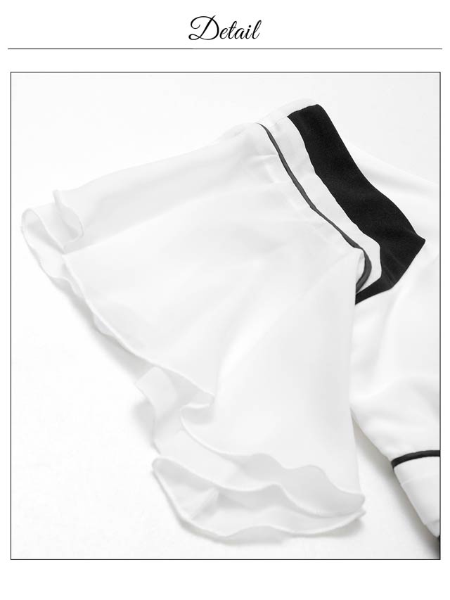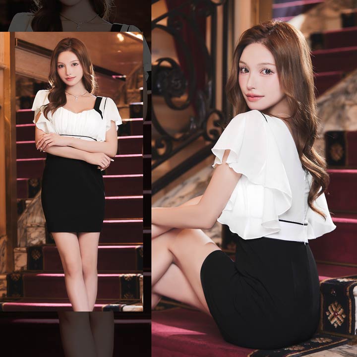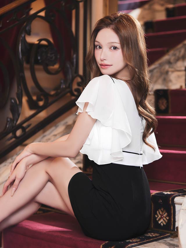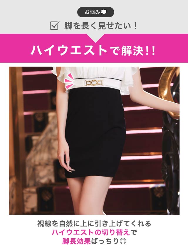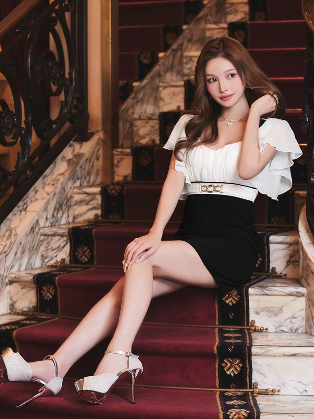 ふんわりとした軽やかなシフォンが女性らしい柔らかさを引き立てるキャバドレス。深めに開いた胸元デザインがデコルテや谷間を美しく見せ、上品さの中に大人の色気も感じさせます♪ハイウエストの切り替え&ベルトモチーフ付きで脚長効果もばっちりです!