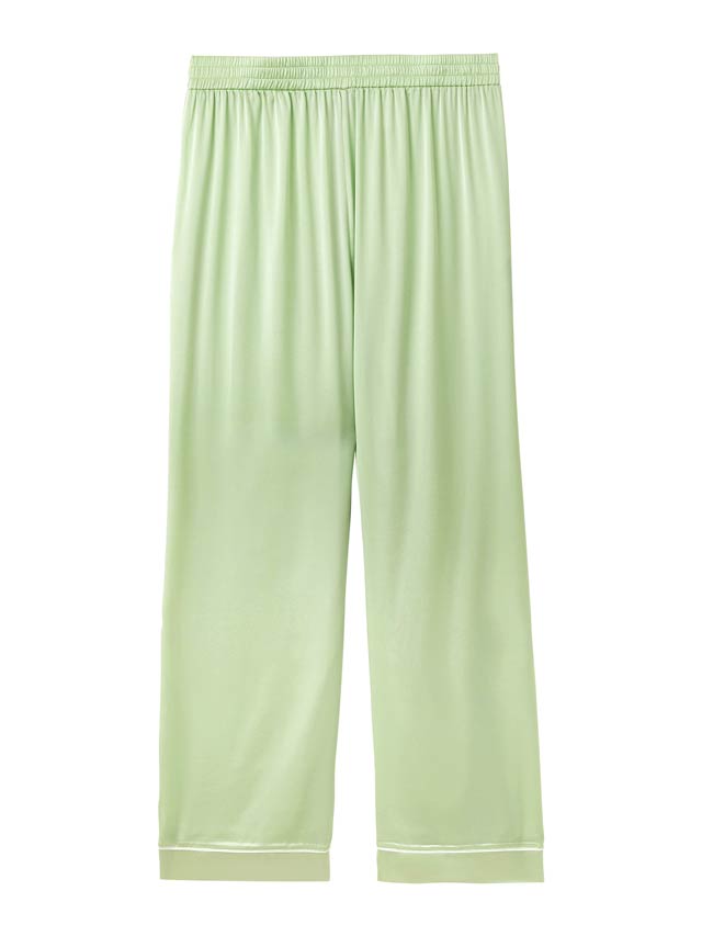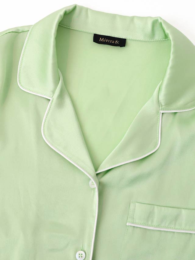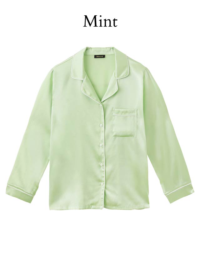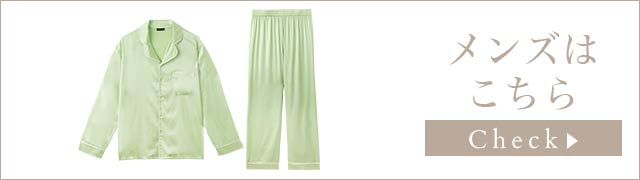 ストレッチシルクを使用したエレガントな長袖パジャマセット。放湿・保温性に優れたシルクに、さらにストレッチ性を加えることで、快適さと優美さを兼ね備えたシルクパジャマに仕上げました。アームホールまですべて袋縫いにすることで、縫い代が直接肌に触れることなく、睡眠時の肌ストレスを軽減させます。ボトムスのウエストはゴム仕様で快適なフィット感に。ボトムスのポケットは肌あたりを考え取り払い、シンプルで洗練されたデザインに。レディースは女性らしさを引き立てるPINKと、流行りのMINTの2色展開。メンズはMINTのみの展開。どちらもカラーも白いパイピングとシェルボタンが高級感を引き立たせます。ホリデーシーズンにペアパジャマとしてギフトするのもおすすめです。