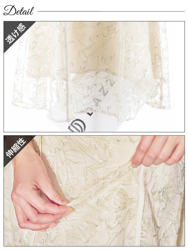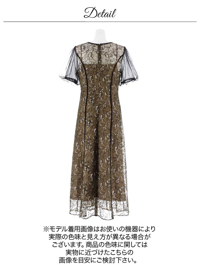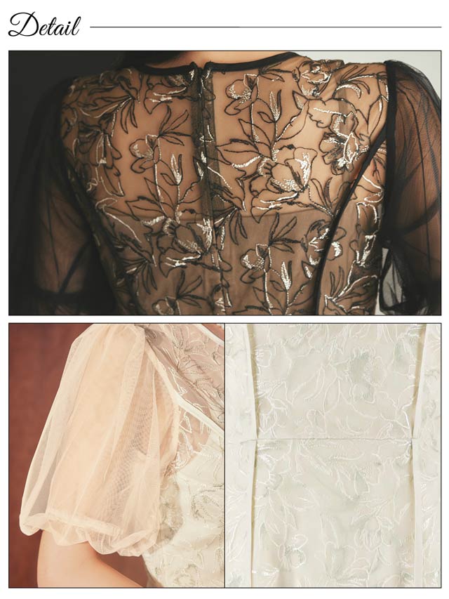 花柄の配色刺繍レースが女性らしい魅力を引き立てるドレス。