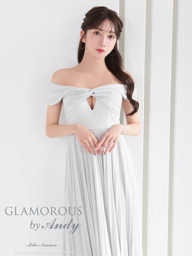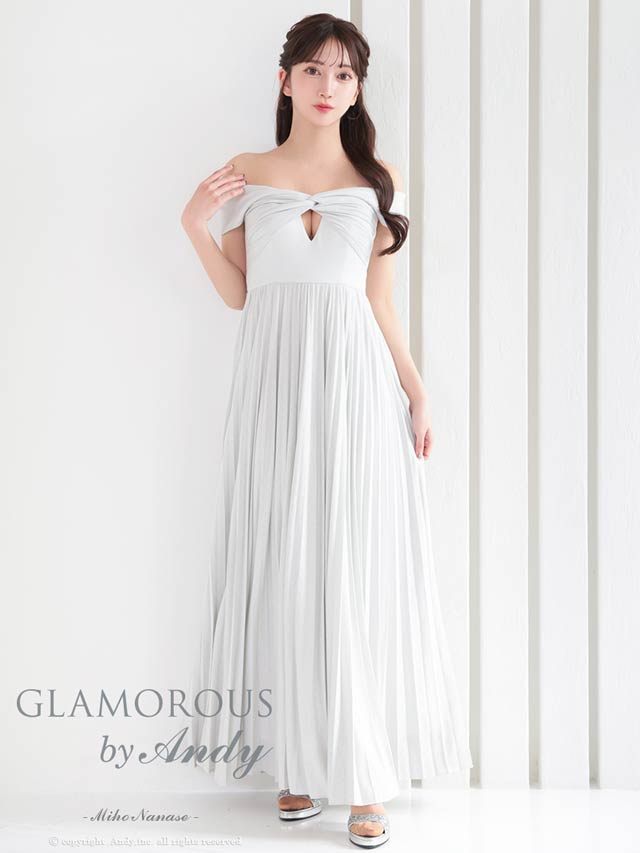 2/12再入荷![GLAMOROUS by Andy]ツイストギャザーオフショルプリーツAラインロングキャバドレス[GMS-V860]