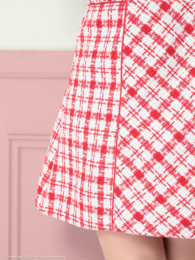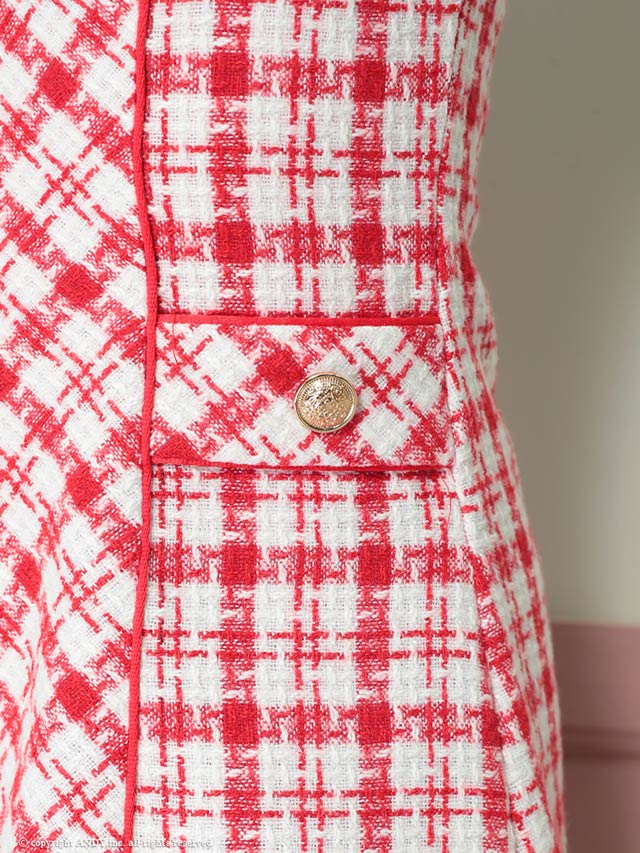 2/12再入荷![an]ドッキングチェックチェーンビジューAラインミニドレス[AOC-3727]