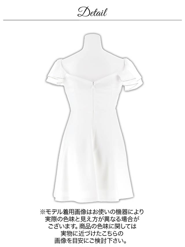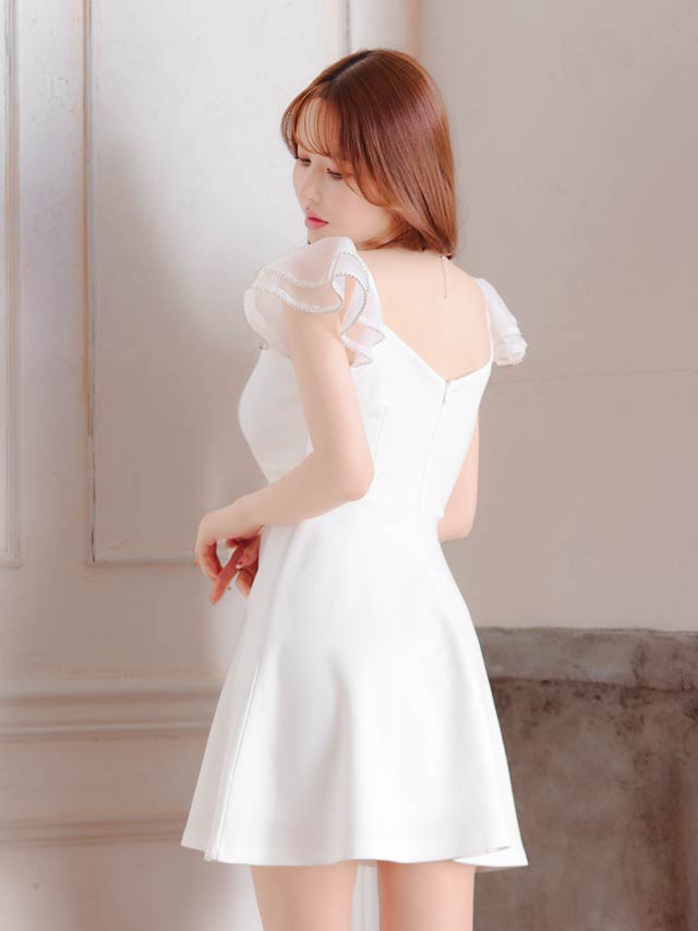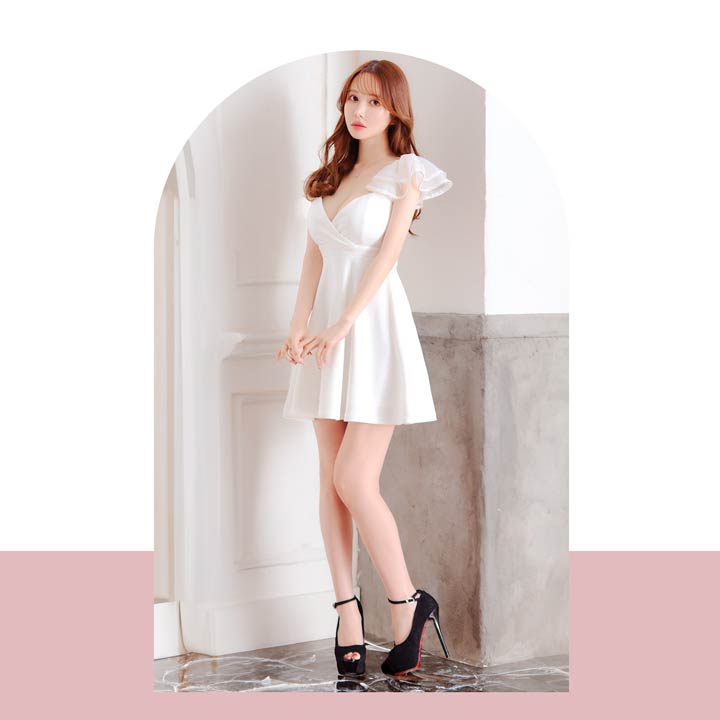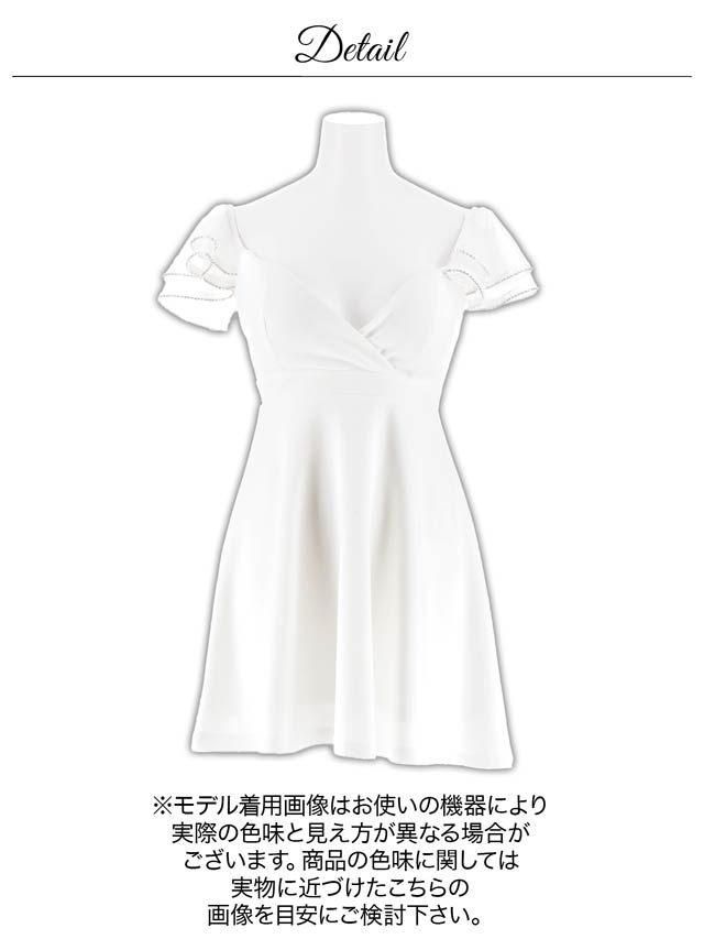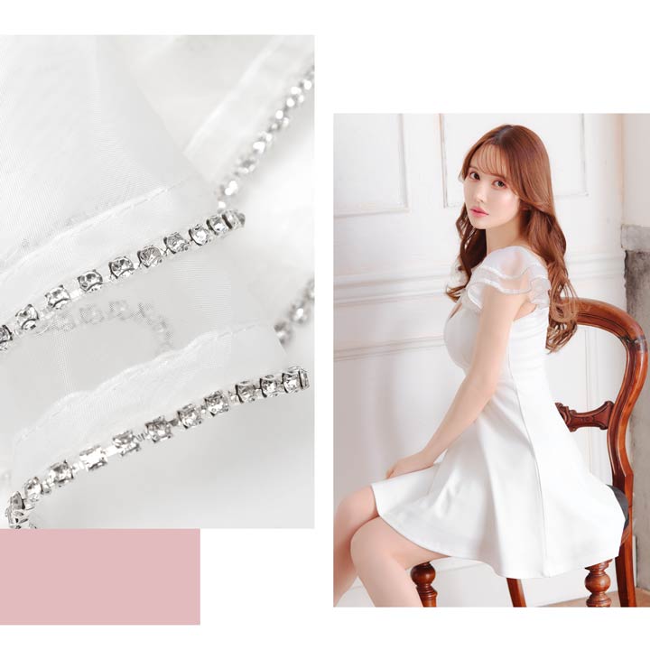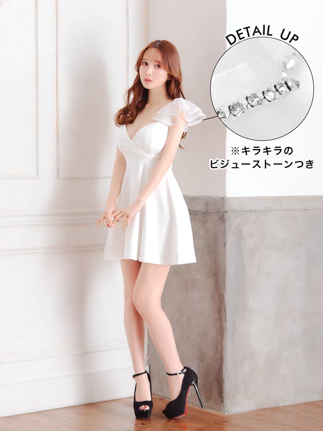 2/12新作!ラインストーン輝くフリル袖×美バスト魅せカシュクールのAラインミニ丈キャバドレス[SML/3サイズ展開]