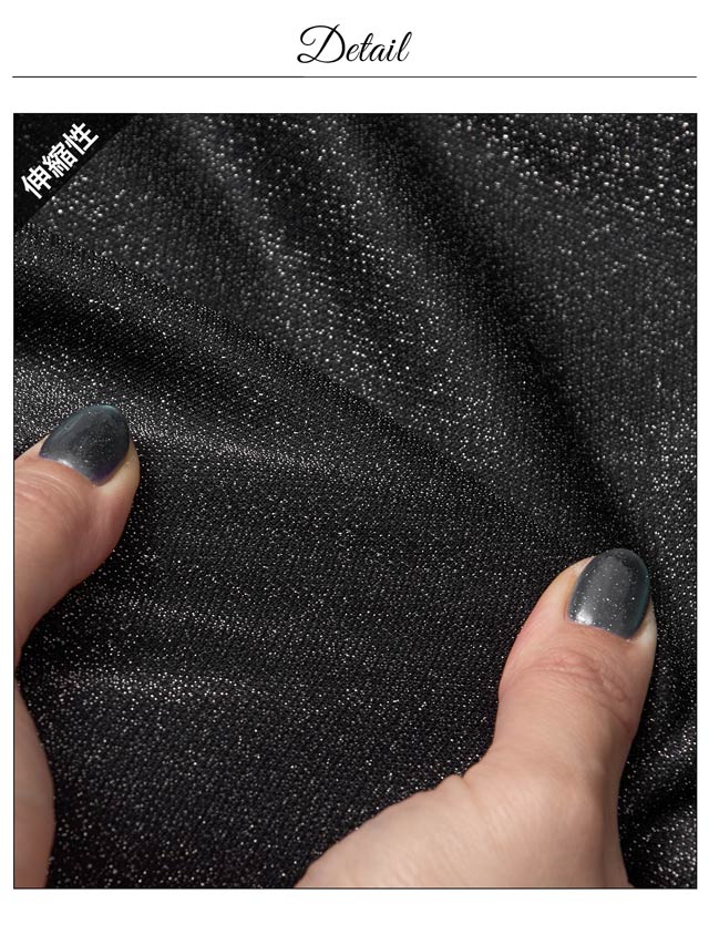 キラリと輝くラメ生地から覗くウエスト透けが視線を集めるキャバドレス。人気のフロントジップ仕様でお好みの谷間魅せがセクシーさ溢れる1着。太腿まで深く入ったスリットはロングドレスならでは美脚効果とスタイルの良さを引き立てる1着です。