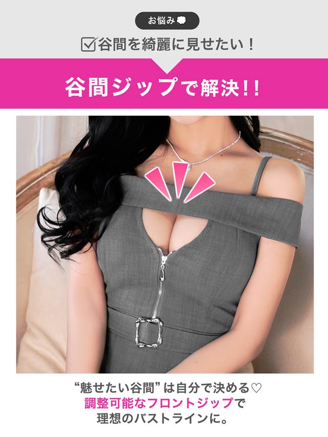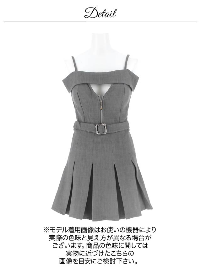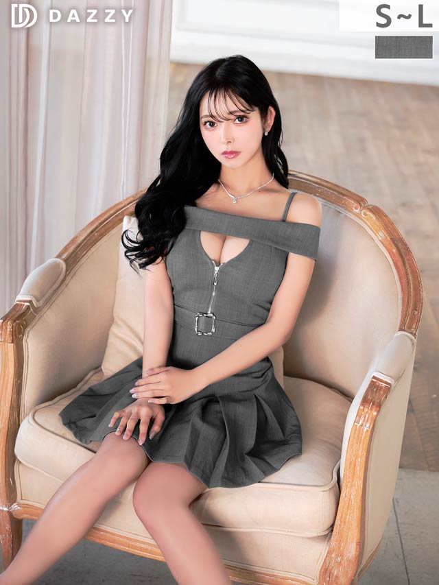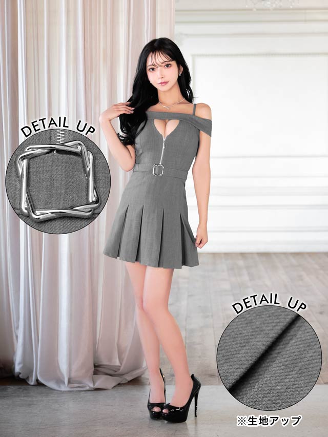 スタイリッシュさと程よい甘さを両立したプリーツ型のAラインキャバドレス。フロントジップ×胸元カットアウトデザインで大人っぽい色気も演出します◎ ウエストベルトモチーフがくびれをしっかり強調し、自然にスタイルアップしてくれる1着です。