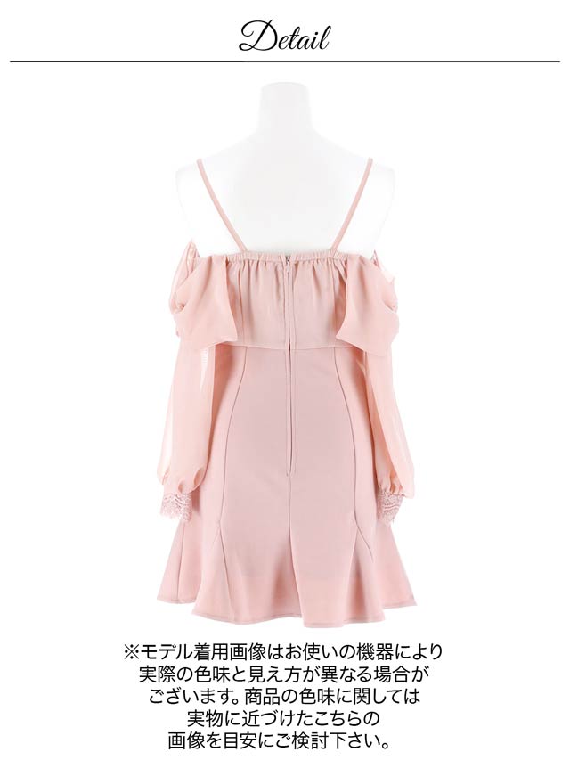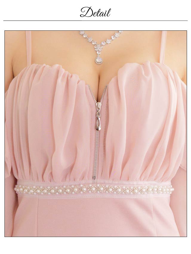 ふんわりとしたオーガンジー&マーメイドシルエットが大人フェミニンな印象を与えるミニドレス。思わず視線を奪われる大胆なオフショル×フロントジップデザインで女性らしいデコルテラインを強調◎パールビジューをあしらったハイウエストの切り替えで脚長効果も抜群です♪バスト部分にボリュームをもたせ、メリハリデザインで男性ウケの良いスタイルに仕上がります。