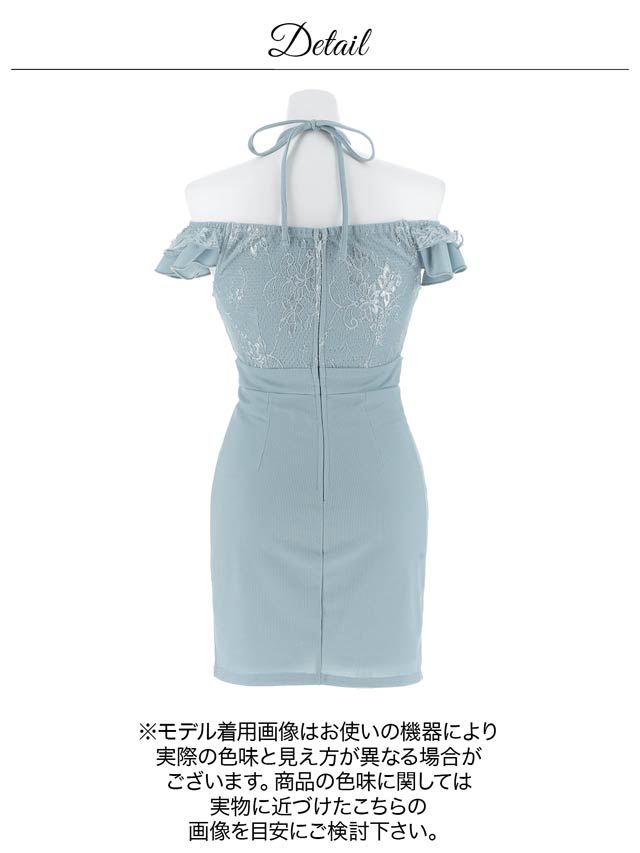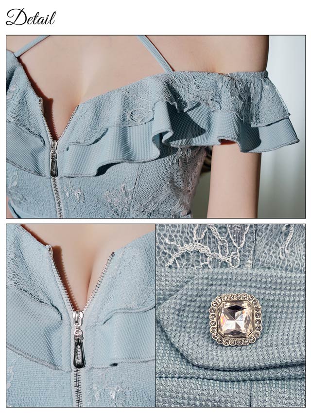 ふんわりとしたフリルレースにフロントジップの谷間魅せが甘めセクシーなミニドレス。女性らしい華奢なクロスラインがデコルテを華やかさに着飾ります♪ オフショル仕様なのでお顔周りをスッキリ魅せてくれるのもポイントです!
