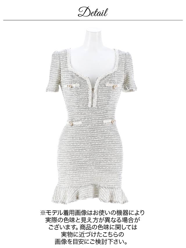 2/2再販!【伸縮性◎】ツイード調デコルテ見せSEXY胸元ジップ半袖マーメイドミニ丈キャバドレス