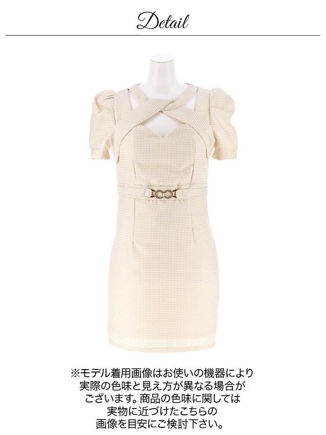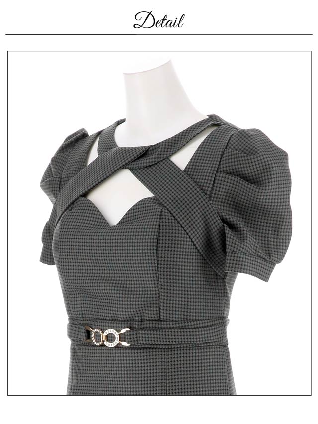 脇下から首回りにかけてのクロスラインでバストを強調し、色っぽさを加えた上品なツイード素材のミニドレス。ツイード生地にラメを織り込むことで、動く度に上品な輝きを演出。ほどよくボリュームのある可愛らしいパフスリーブで気になる二の腕をカバー◎ウエスト部分にはベルトモチーフ付きなので脚長効果も抜群です!
