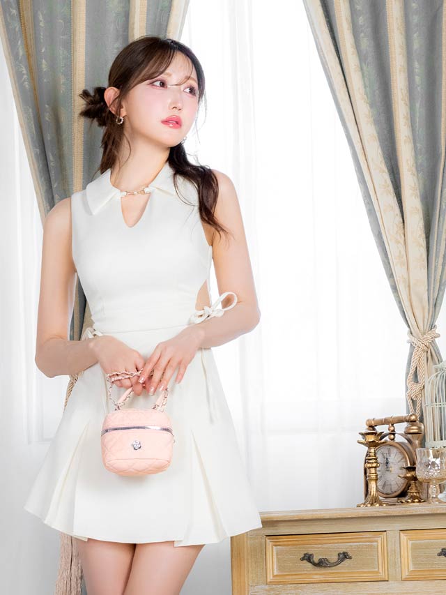 キルティングデザインにお花モチーフをあしらった可愛らしいサイズのミニバッグ。ショルダーチェーンが付いていて肩掛けとしても使える便利な2way仕様◎シンプルなのでキャバドレスはもちろん、私服コーデにも取り入れやすいアイテムです!