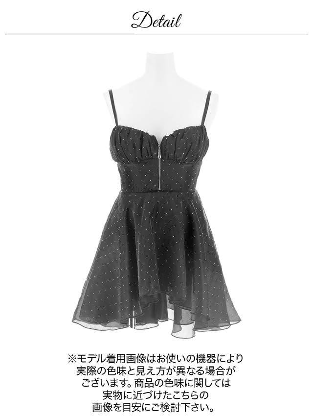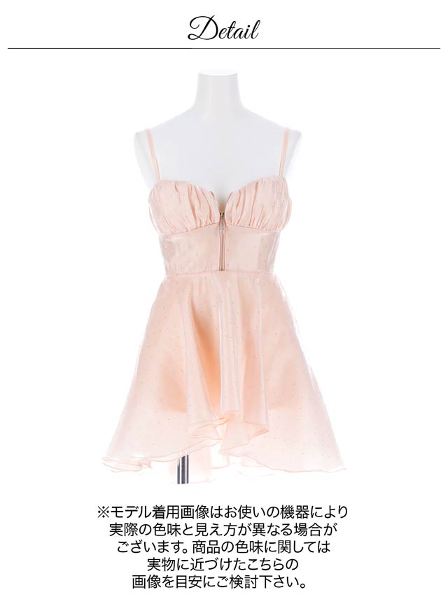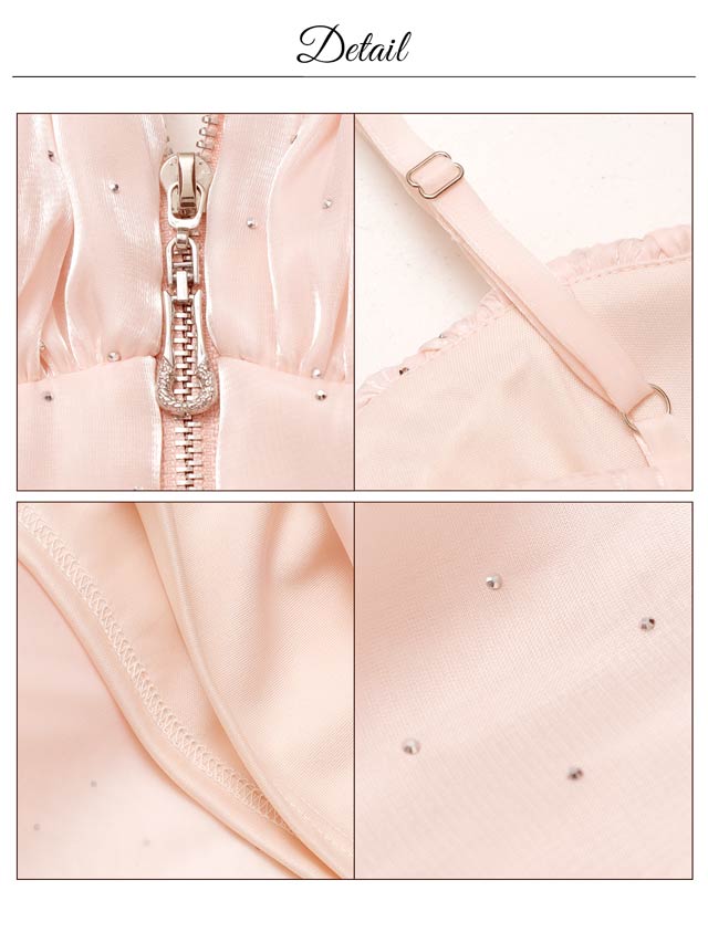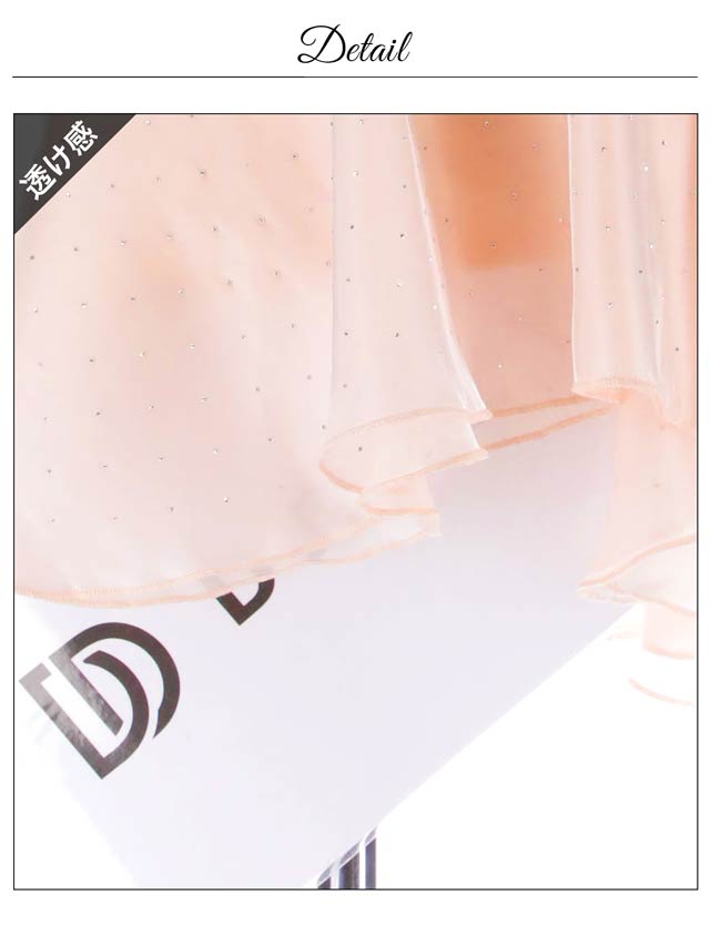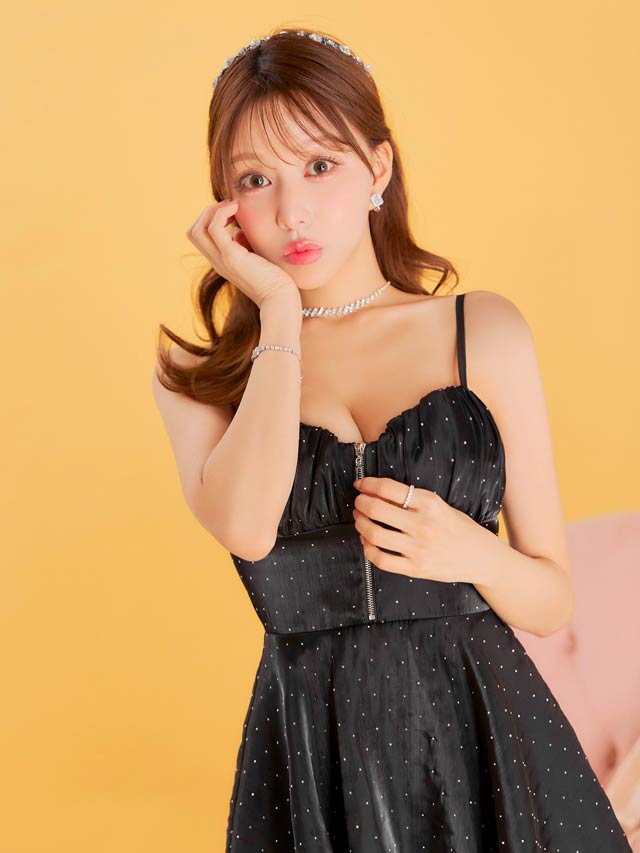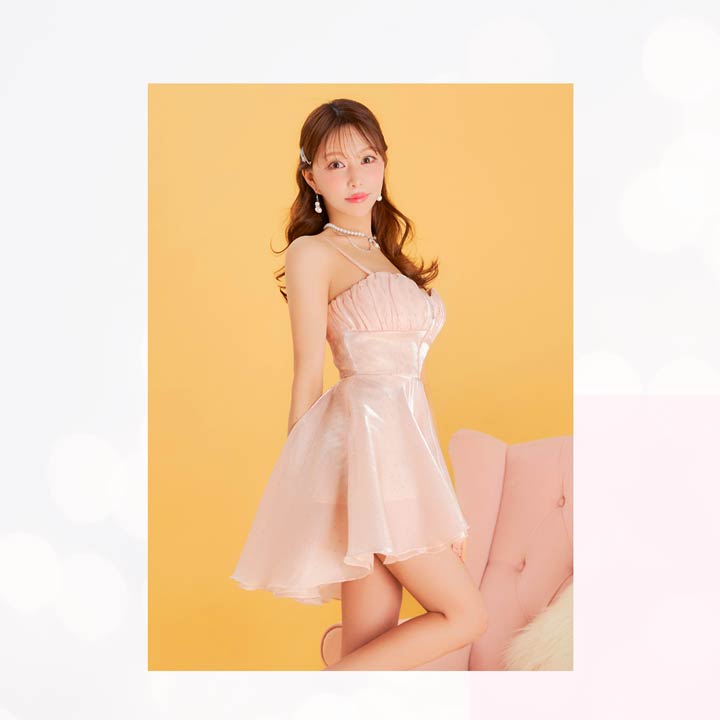 ふんわり広がる甘々シフォンスカートに煌めくラインストーンが美しいキャバドレス。バスト部分はギャザーをたっぷり寄せた立体的なデザインで女性らしいシルエットを引き立てます。華奢なストラップが肩周りをすっきり見せてくれるのもポイントです!