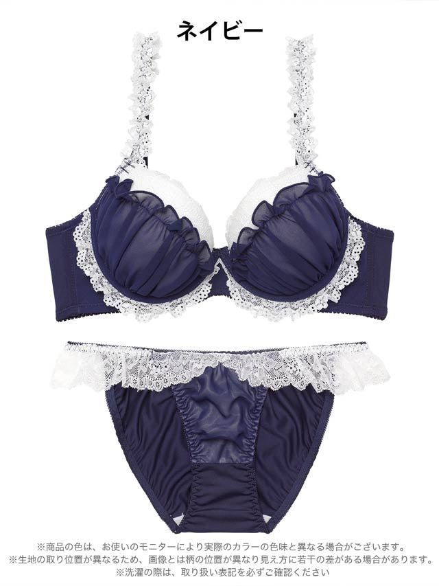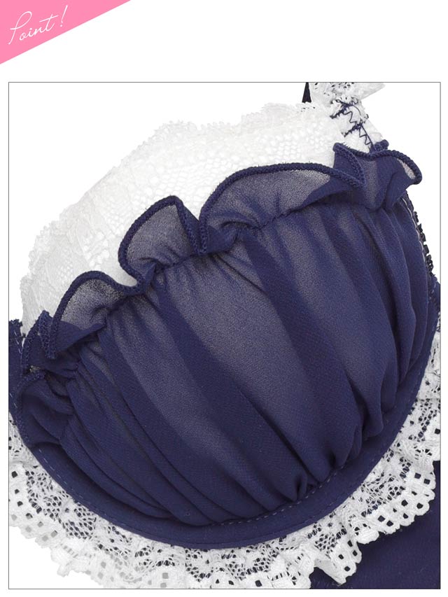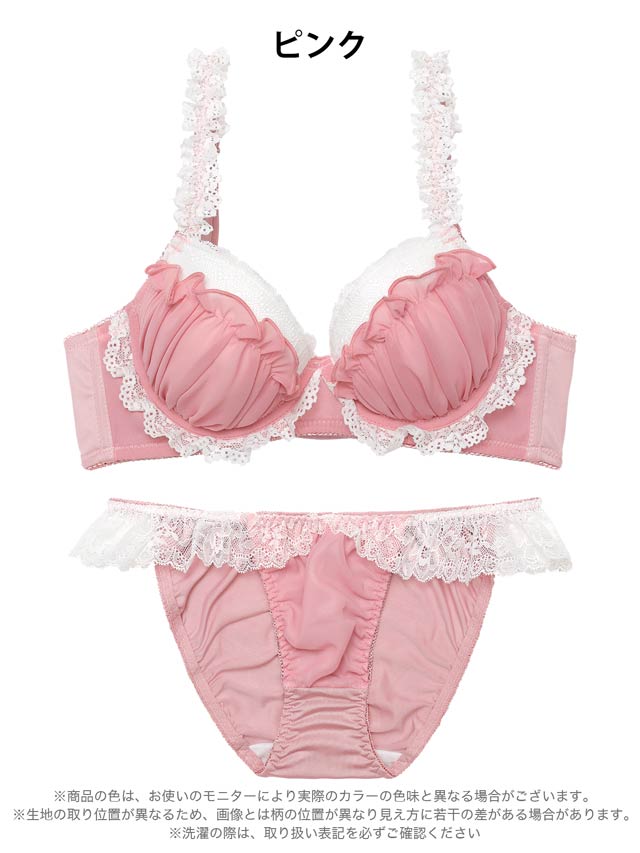 2/25新作!ドリーミーフリルレース育乳脇高ブラジャー&フルバックショーツ[推し][人気]