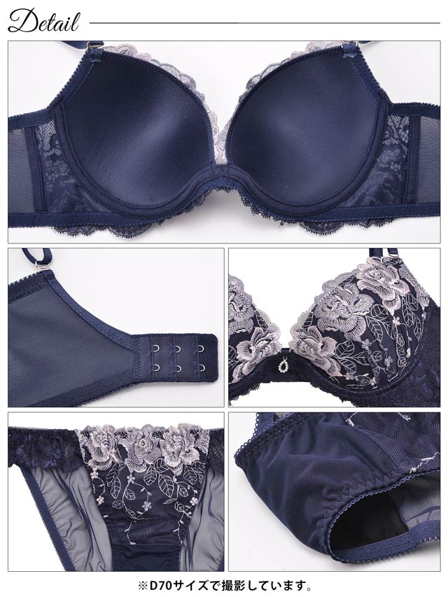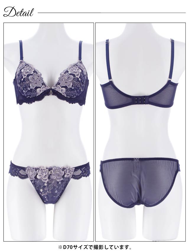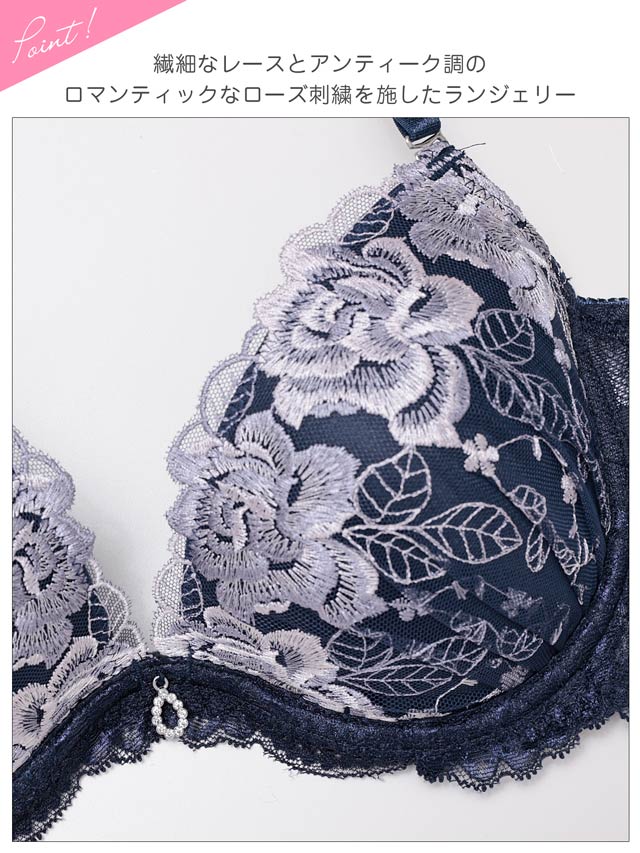 アンティーク調のロマンティックなローズ刺?を施したランジェリー。繊細なレース使いと、中央のドロップチャームで高級漂う雰囲気に◎ 脇高仕様で胸元をしっかりキープ出来る1着です♪ モデル…PyunA.