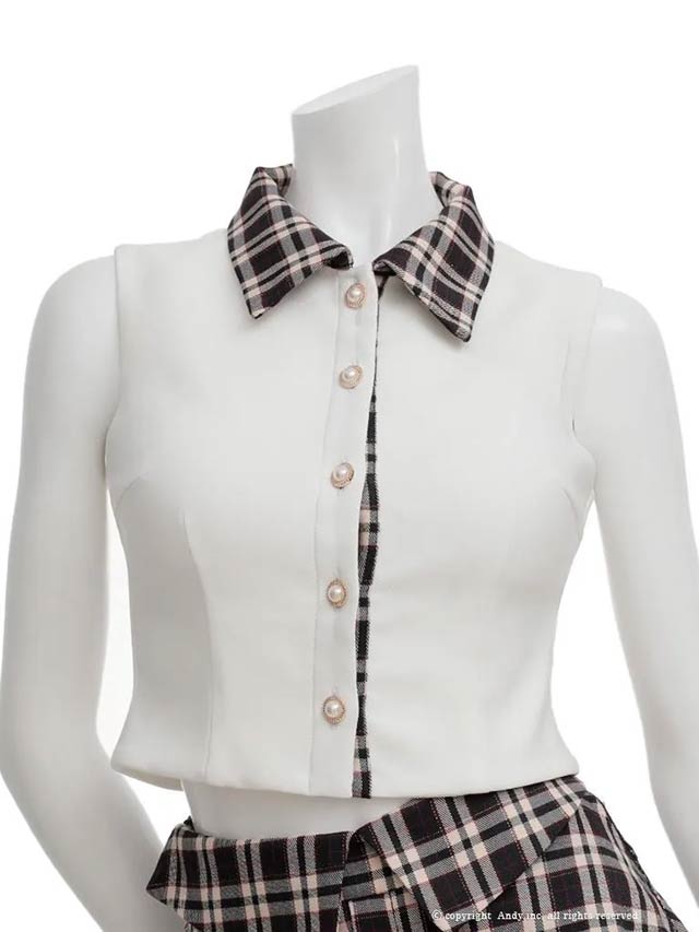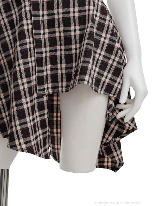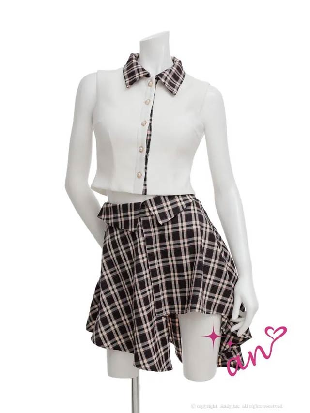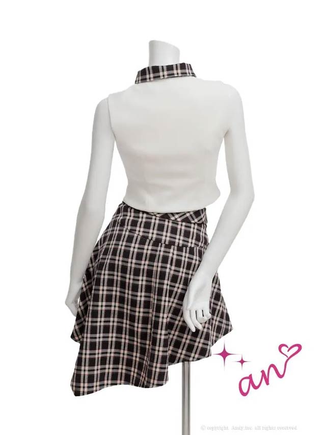 2/5新作!【今だけポイント20倍】[an]襟付きノースリーブチェック柄アシメAラインミニ丈セットアップ[AOC-4056]