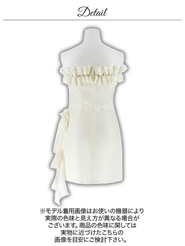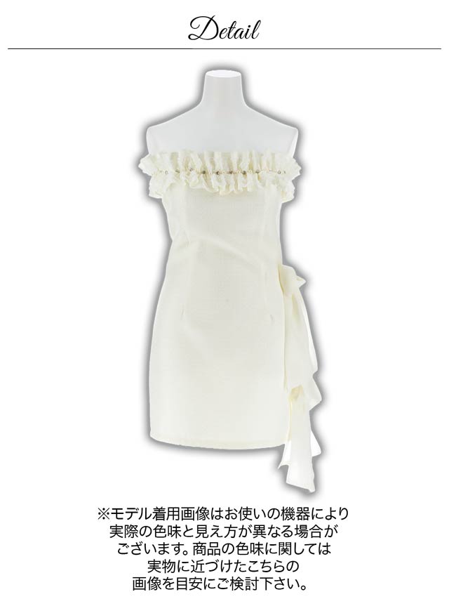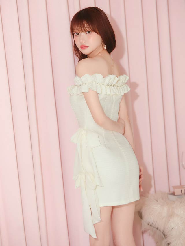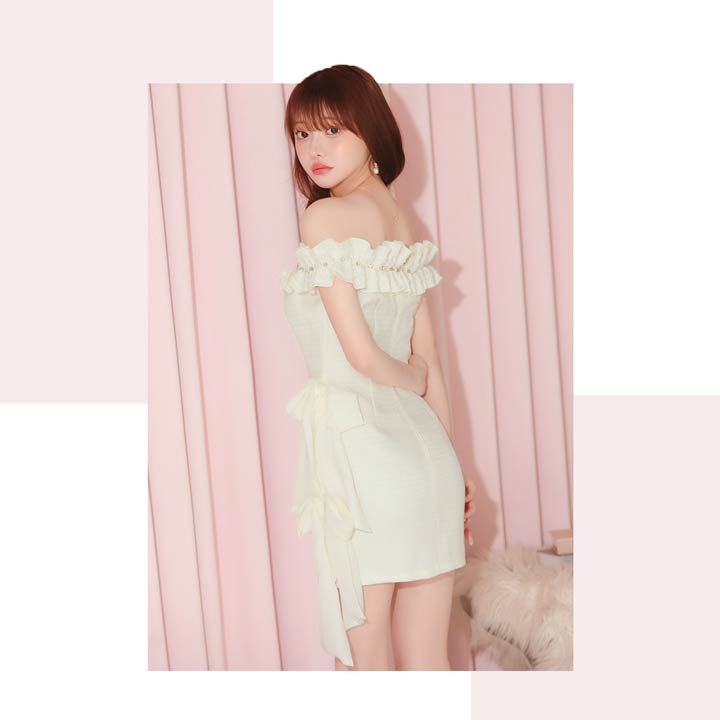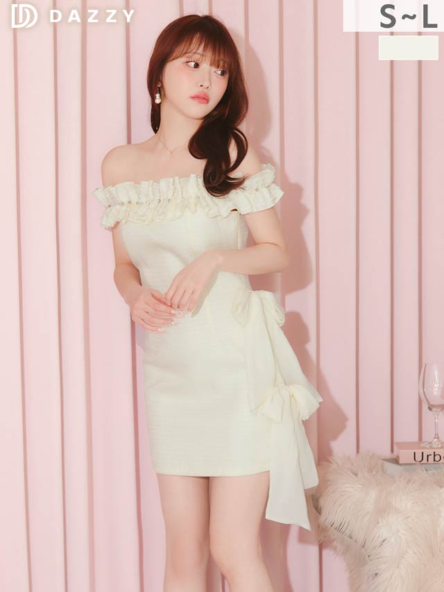 2/6新作!華やか顔魅せフリル×存在感与えるサイドリボンのワンショルタイトミニ丈キャバドレス[SML/3サイズ展開]