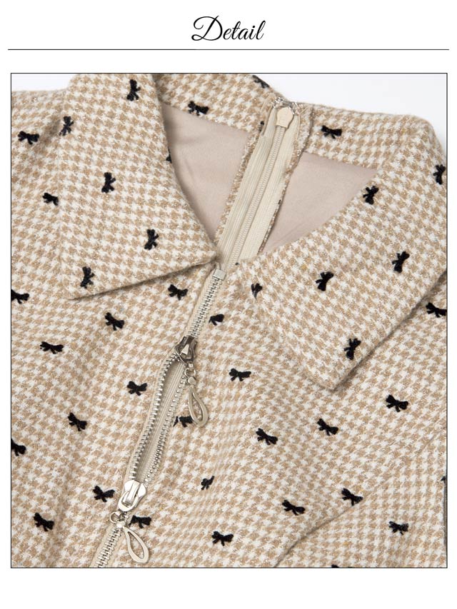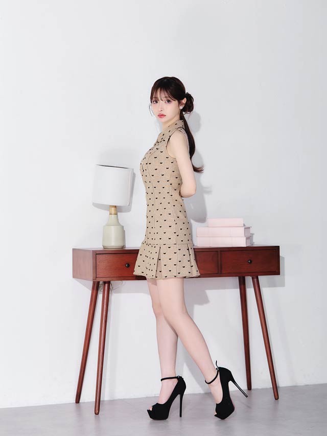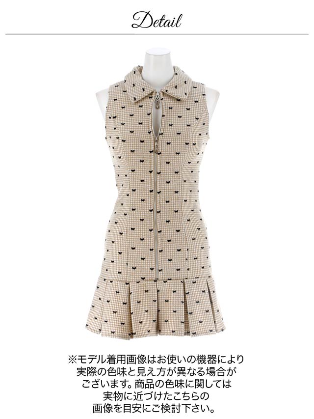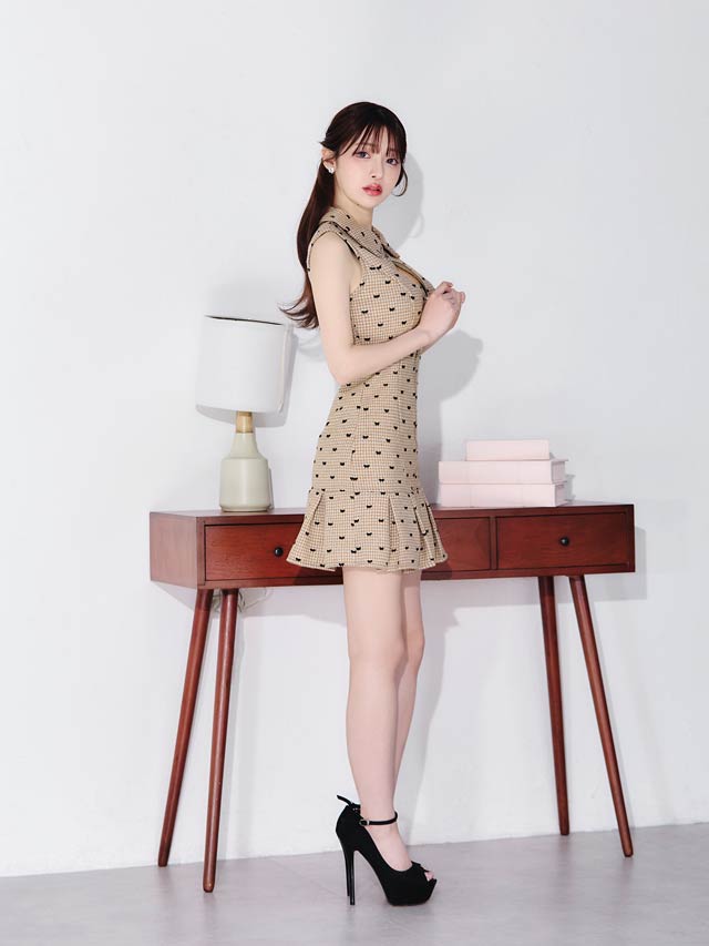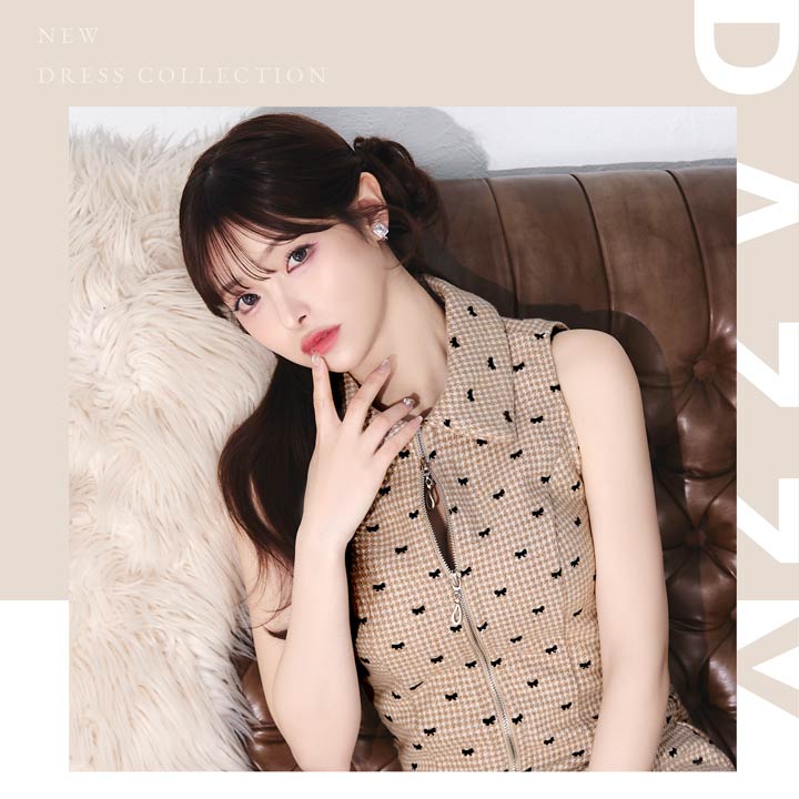 甘さと上品さをミックスした、大人可愛いキャバドレス。小さなリボン柄がフェミニンさをプラスしつつ、襟付きデザインとフロントジップで大人な女性を演出します◎ プリーツのマーメイドスカートで美シルエット叶う1着です。