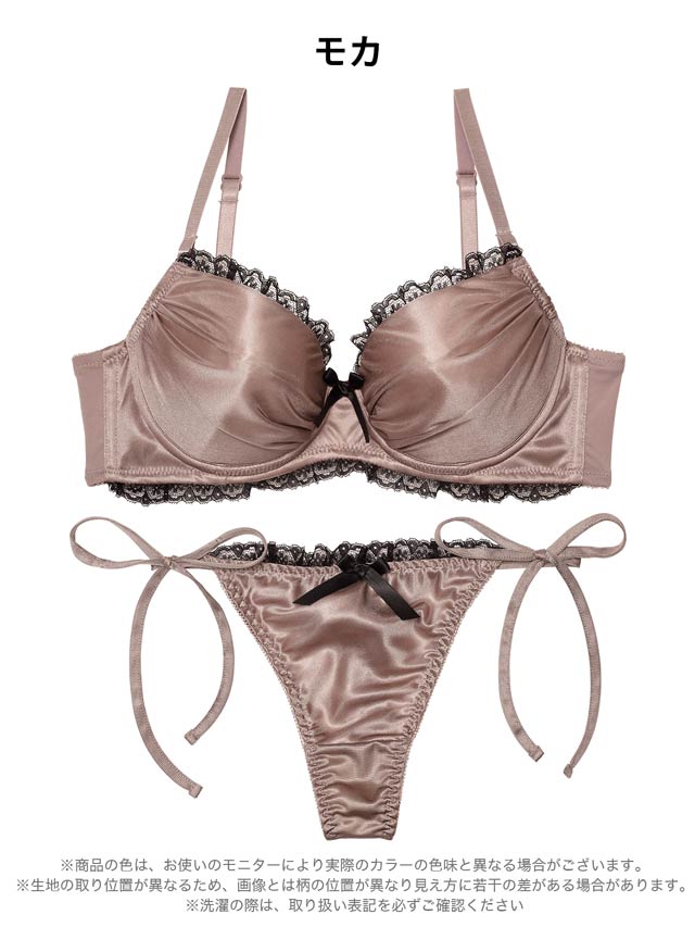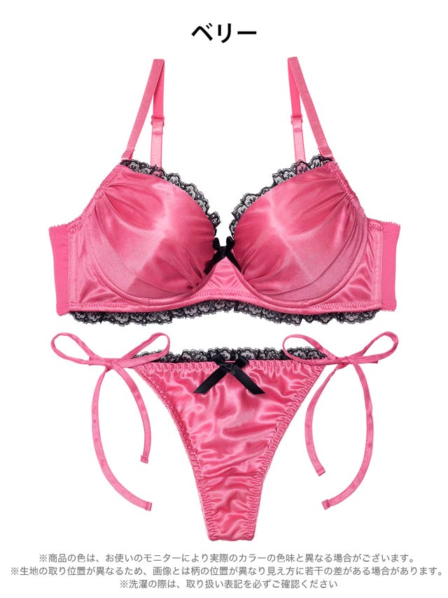 3/2新作!【EFサイズ】【Tバック】【三上悠亜着用】メルティサテンレースブラジャー&サイド紐Tバックショーツ[推し]