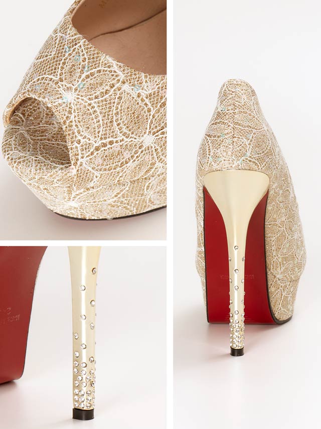 繊細なラメとスパンコールを散りばめた華やかなフラワー柄のオープントゥパンプス。ヒール部分にはラインストーンがきらめき、バックスタイルまで抜かりないデザイン♪14cmの高ヒールで脚をすらりと見せつつ、厚めのストーム付きで安定感のある履き心地です!