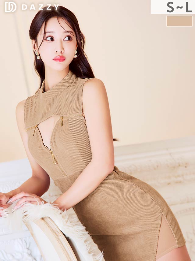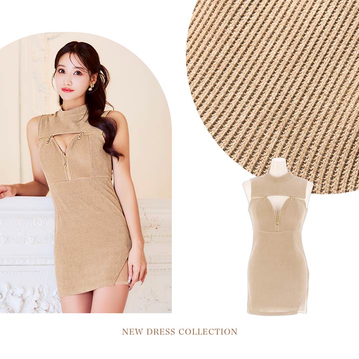落ち着いたカラーとシンプルなデザインが大人の魅力を引き立てるキャバドレス。胸元のカットアウトとジップでバストを強調し、視線を惹きつけるセクシーな仕上がりに♪脚元をさりげなく透け見せするサイドのシアー切替もポイントになった一着です◎
