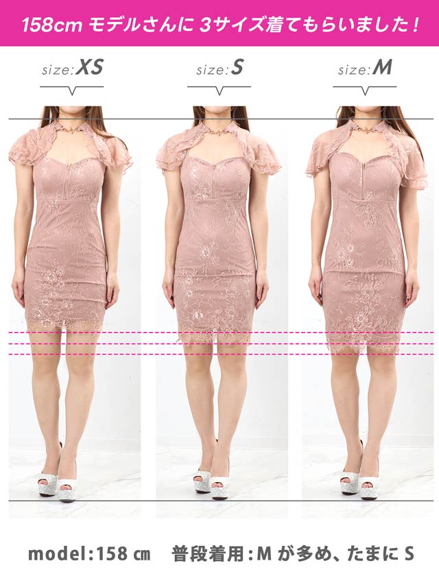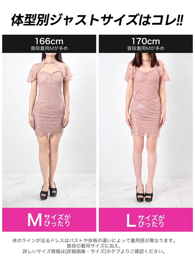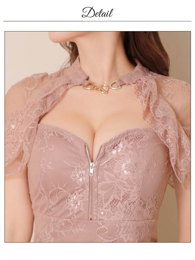 品のあふれるカラーを全身にまとう色っぽ総レースドレス! 袖付きで二の腕カバーも◎胸元の肌魅せが大胆不敵でフロントジップのエロさも際立つ♪1着は持っておきたい男ウケ最強デザイン!