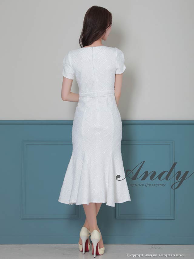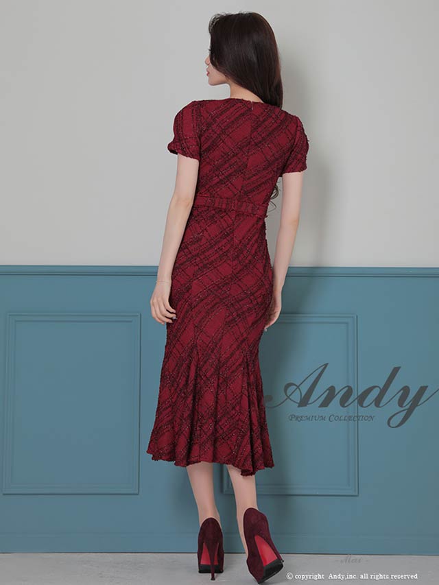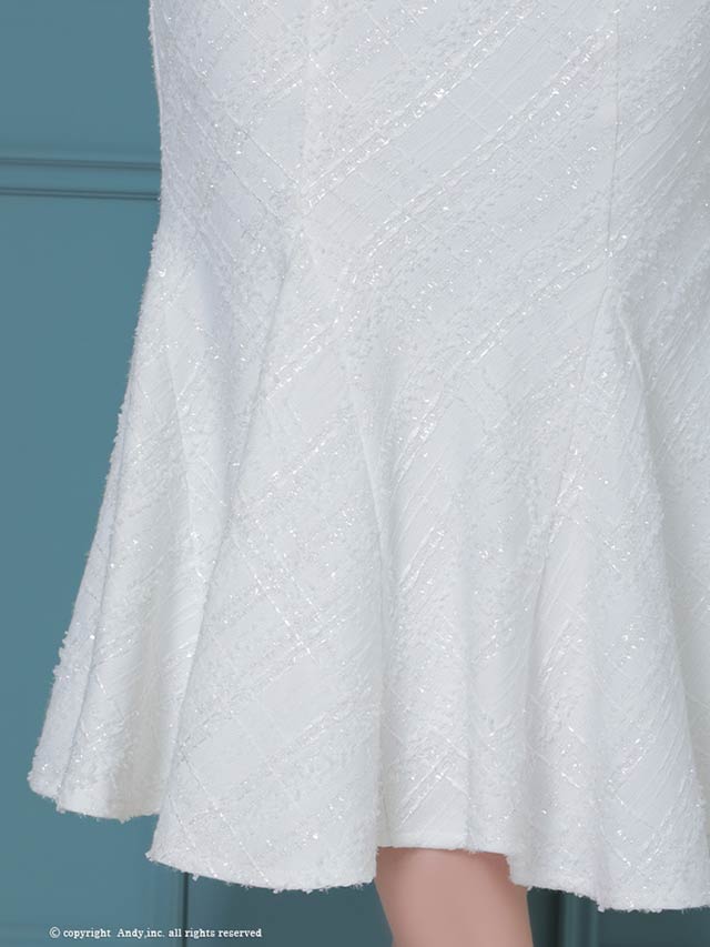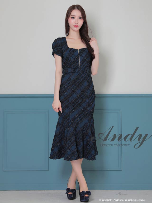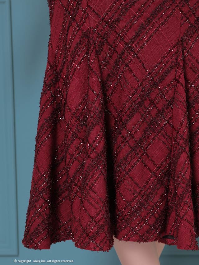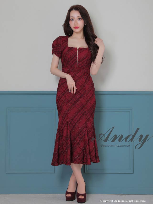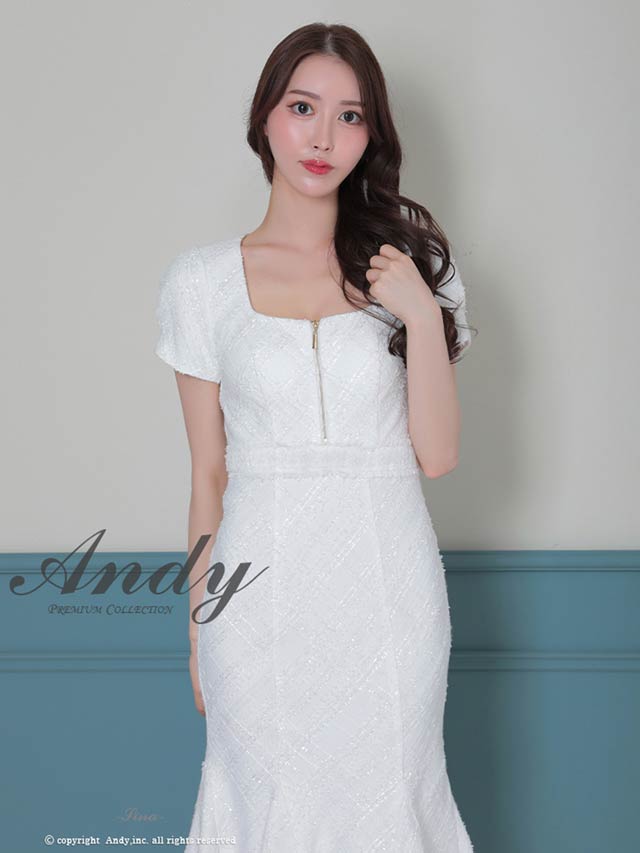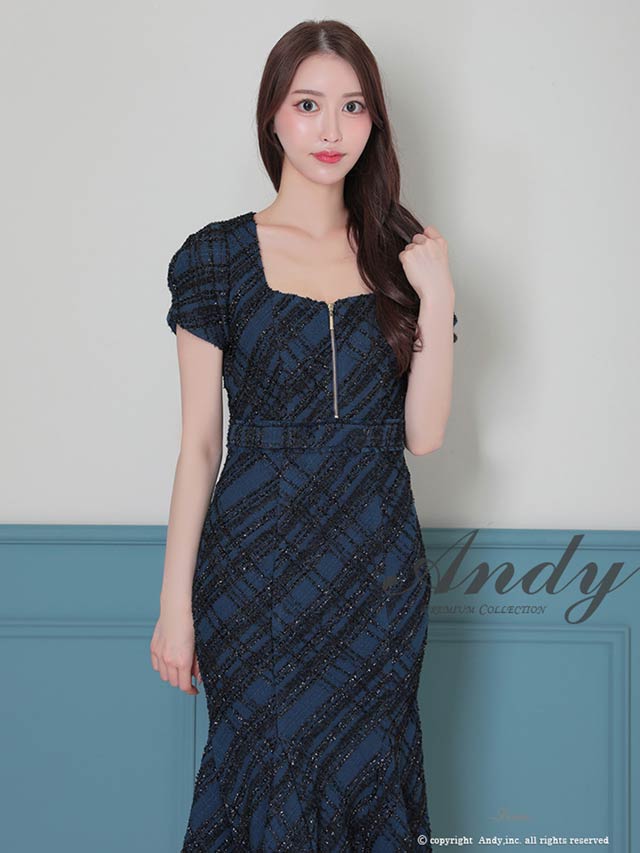 3/5新作![Andy]チェック柄ラメツイードフロントジップ半袖マーメイドロング丈キャバドレス[AN-ON3037]