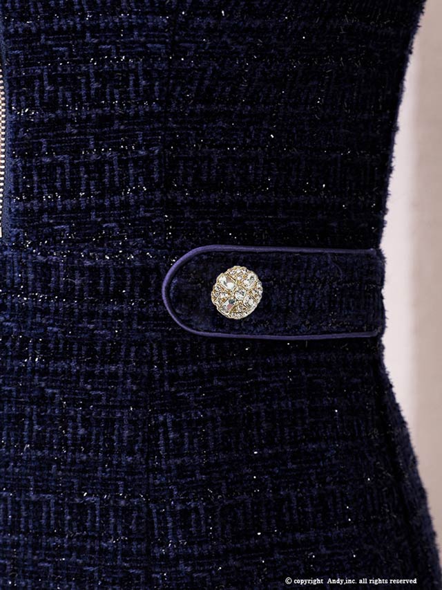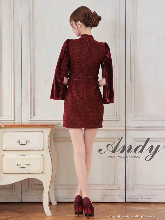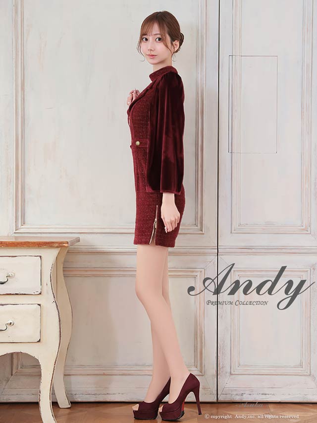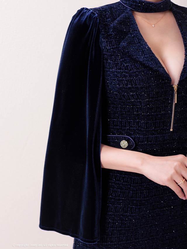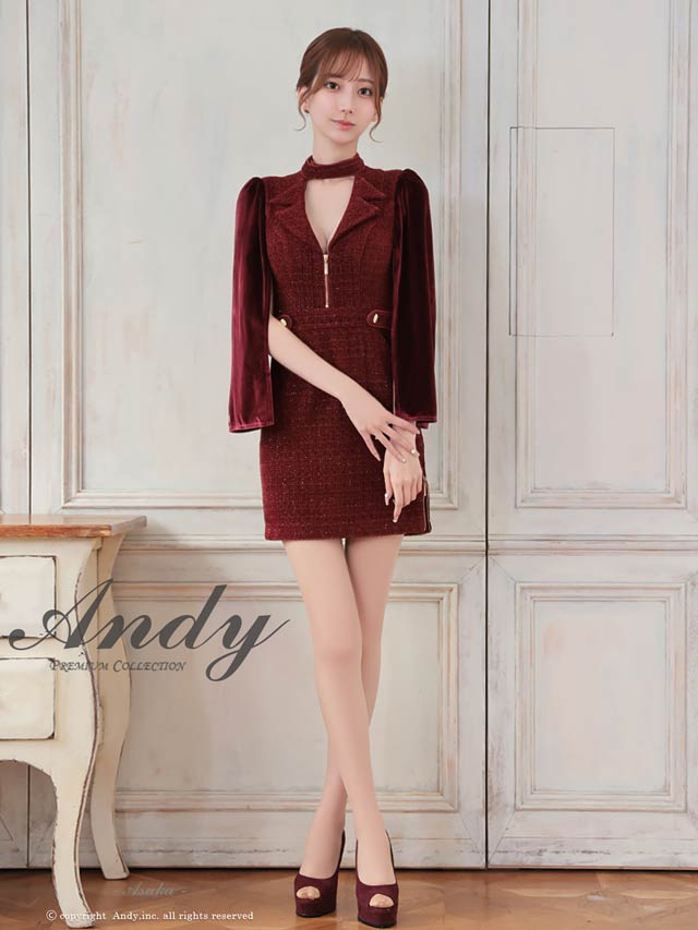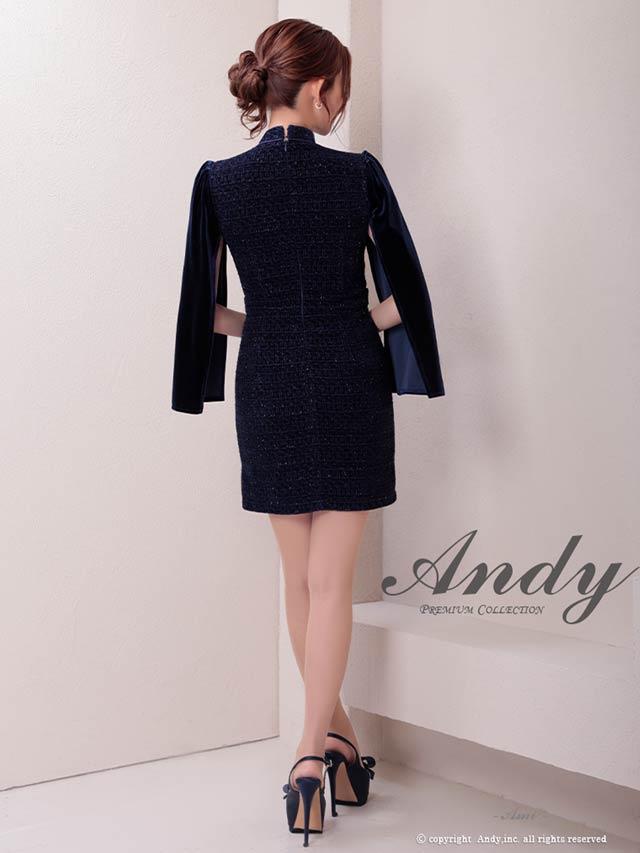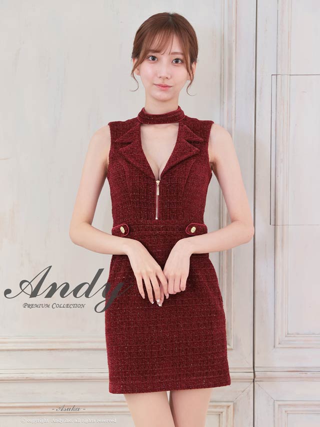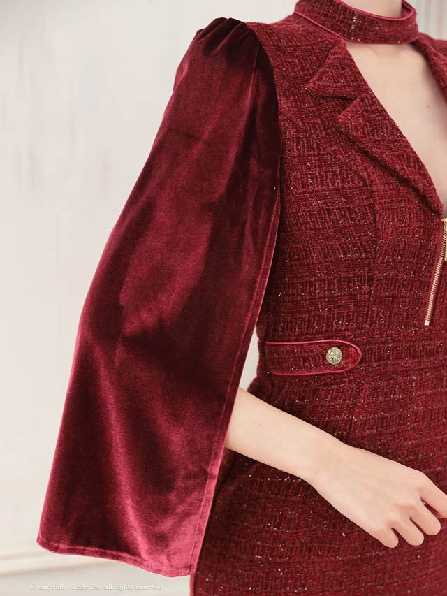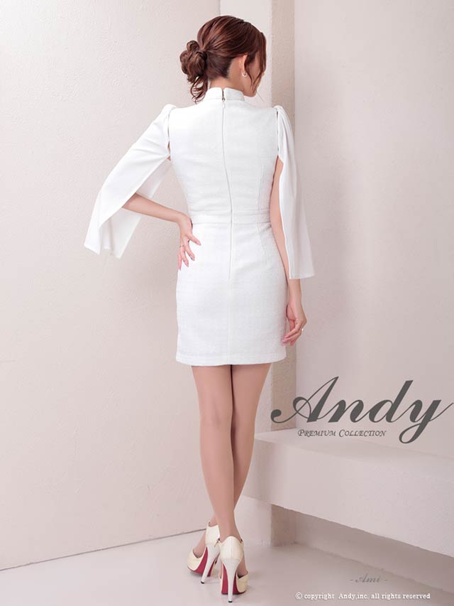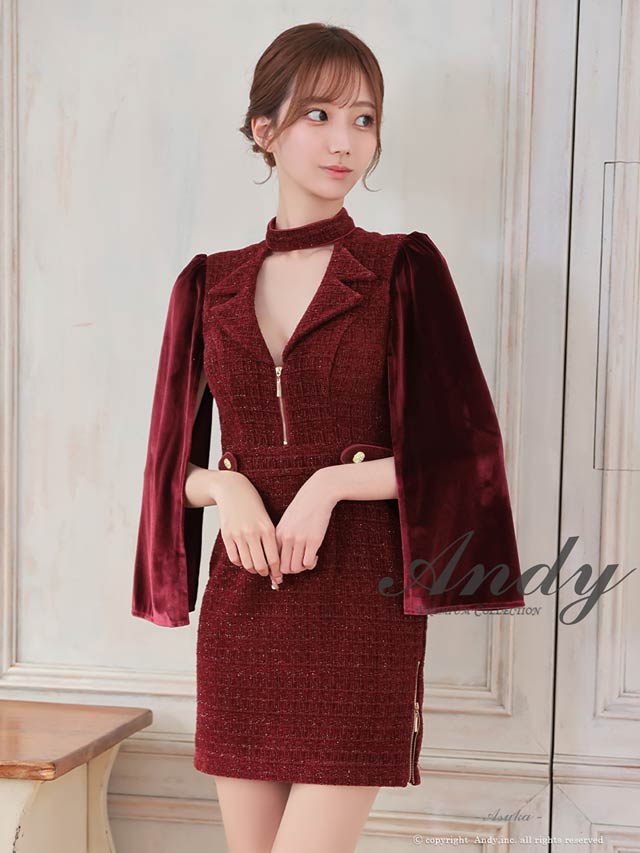 3/5新作![Andy]2wayスリット袖ツイード襟付きジップタイトミニ丈キャバドレス[AN-ON3017]