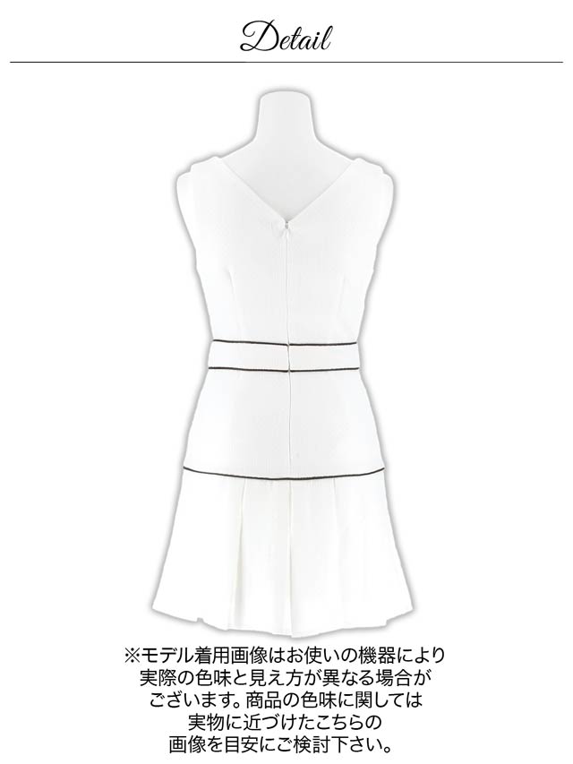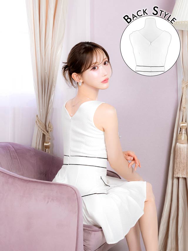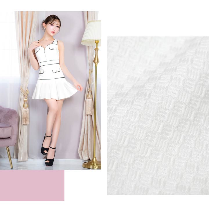 3/6新作!谷間魅せが調節できる清楚なホワイト×パイピングのAラインミニ丈キャバドレス[SML/3サイズ展開]