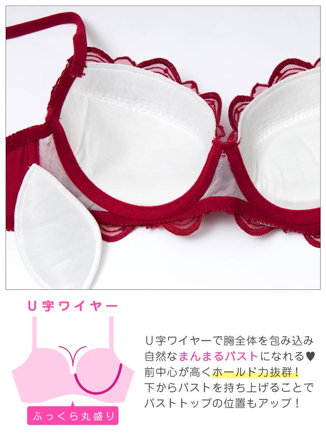 3/4カップ/ワイヤー:有(U字)/ホック:バック2段3列